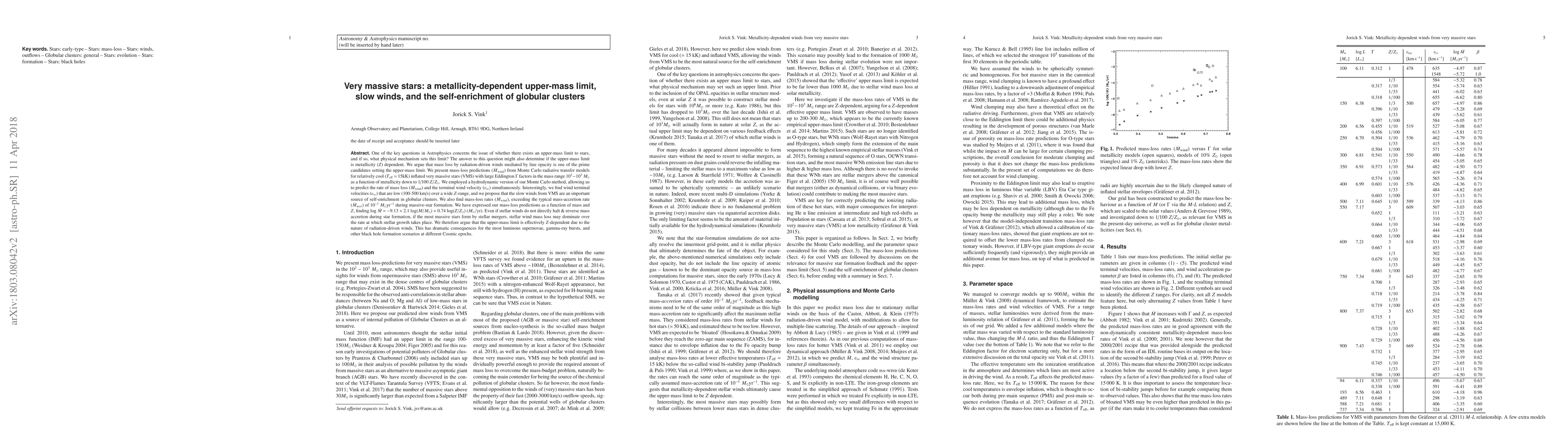 This paper explores the upper-mass limit for very massive stars (VMS), proposing that radiation-driven winds set this limit and that it is dependent on metallicity. The study finds slow wind terminal velocities and significant mass-loss rates, suggesting that these winds contribute to the self-enrichment of globular clusters.