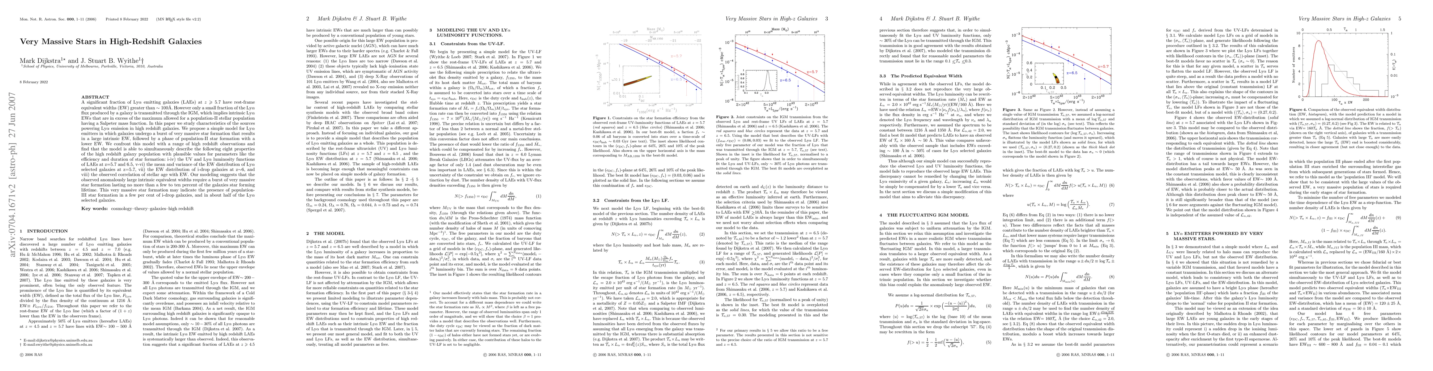A significant fraction of Lyman Alpha (Lya) emitting galaxies (LAEs) at z> 5.7 have rest-frame equivalent widths (EW) greater than ~100 Angstrom. However only a small fraction of the Lya flux produced by a galaxy is transmitted through the IGM, which implies intrinsic Lya EWs that are in excess of the maximum allowed for a population-II stellar population having a Salpeter mass function. In this paper we study characteristics of the sources powering Lya emission in high redshift galaxies. We propose a simple model for Lya emitters in which galaxies undergo a burst of very massive star formation that results in a large intrinsic EW, followed by a phase of population-II star formation with a lower EW. We confront this model with a range of high redshift observations and find that the model is able to simultaneously describe the following eight properties of the high redshift galaxy population with plausible values for parameters like the efficiency and duration of star formation: i-iv) the UV and Lya luminosity functions of LAEs at z=5.7 and 6.5, v-vi) the mean and variance of the EW distribution of Lya selected galaxies at z=5.7, vii) the EW distribution of i-drop galaxies at z~6, and viii) the observed correlation of stellar age with EW. Our modeling suggests that the observed anomalously large intrinsic equivalent widths require a burst of very massive star formation lasting no more than a few to ten percent of the galaxies star forming lifetime. This very massive star formation may indicate the presence of population-III star formation in a few per cent of i-drop galaxies, and in about half of the Lya selected galaxies.