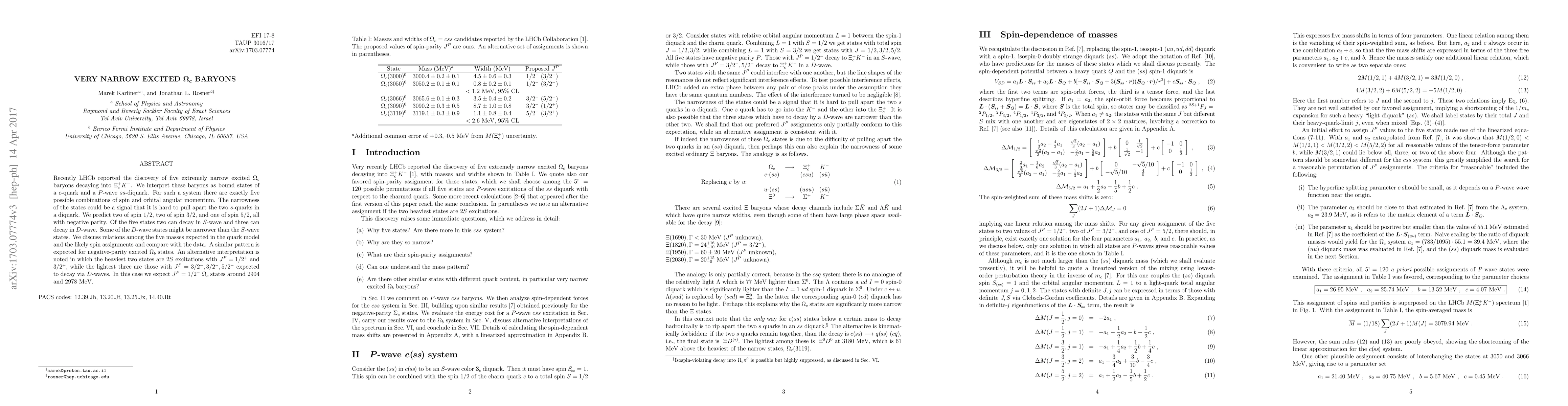 The LHCb collaboration discovered five extremely narrow excited $\Omega_c$ baryons, interpreted as bound states of a $c$-quark and a $P$-wave $ss$-diquark. The paper predicts five combinations of spin and orbital angular momentum, suggesting the difficulty in separating the two $s$-quarks in the diquark, and discusses potential decay patterns and mass relations.