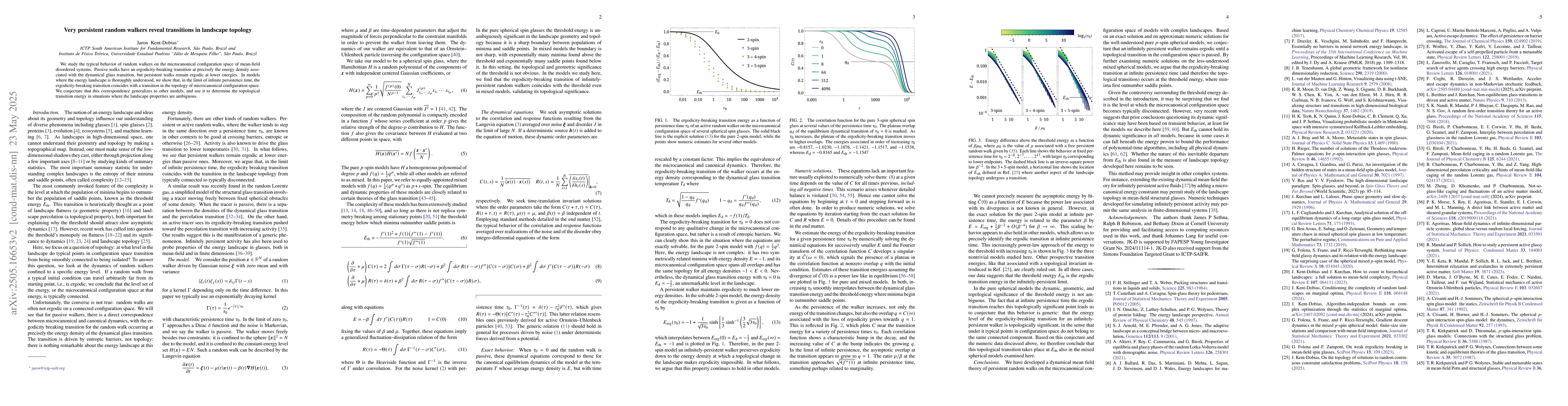 The research analyzes random walkers on the microcanonical configuration space of mean-field disordered systems, comparing passive and persistent walks to identify transitions in landscape topology.