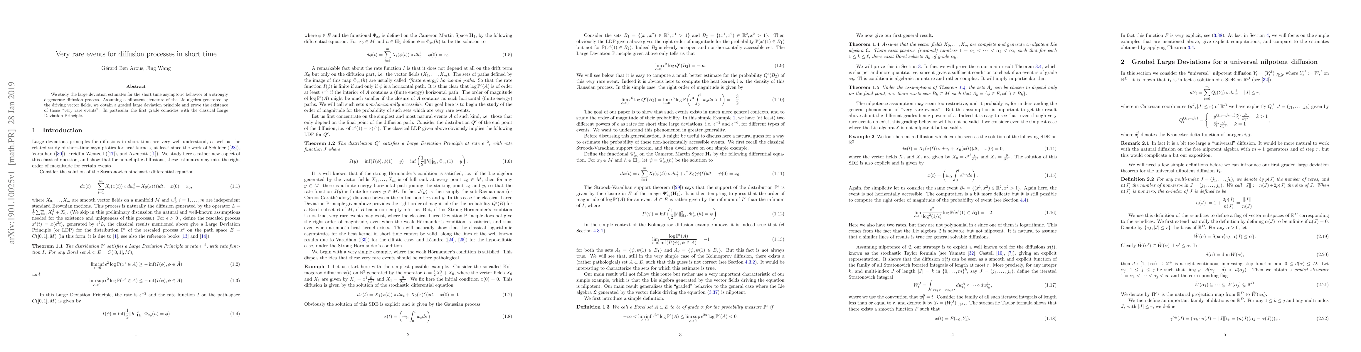 We study the large deviation estimates for the short time asymptotic behavior of a strongly degenerate diffusion process. Assuming a nilpotent structure of the Lie algebra generated by the driving vector fields, we obtain a graded large deviation principle and prove the existence of those "very rare events". In particular the first grade coincides with the classical Large Deviation Principle.