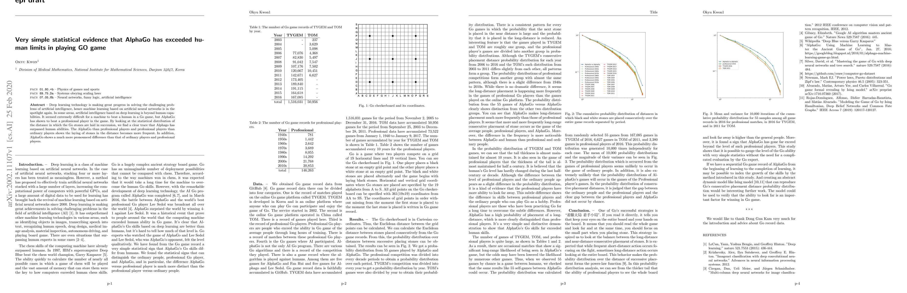Summary: AlphaGo demonstrates superior performance in Go by surpassing human players, as evidenced by a statistical analysis of the distance between successive stone placements. The significant difference in stone-laying distances between AlphaGo, professional players, and ordinary players indicates that AlphaGo has exceeded human capabilities in this domain.