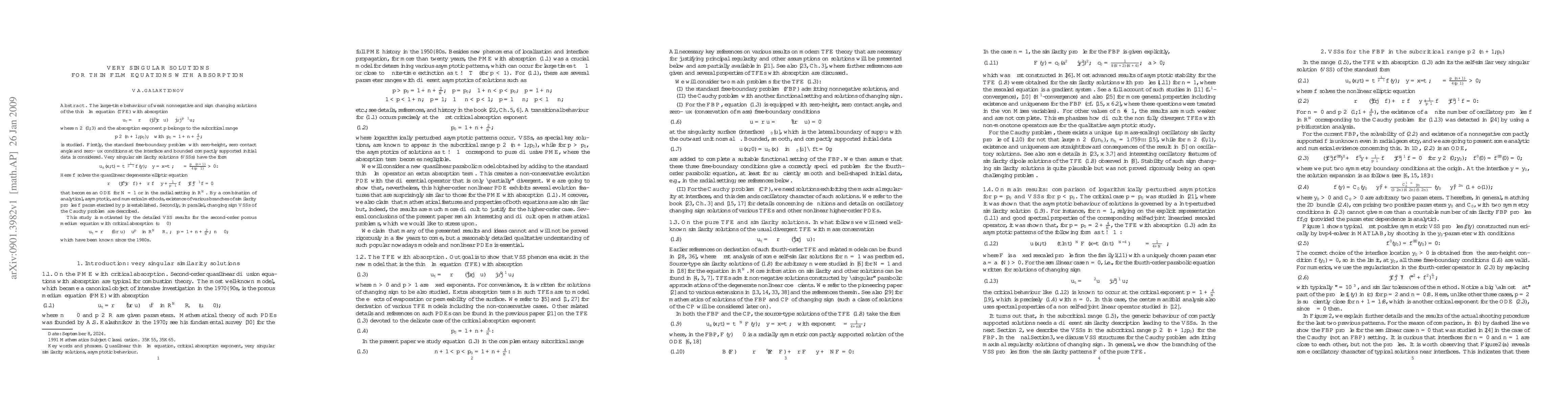 Summary: This paper investigates the self-similar large time behavior of weak solutions for the thin film equation with absorption, focusing on very singular solutions that arise in the process. The study provides insights into the dynamics of thin film flow under absorption conditions.