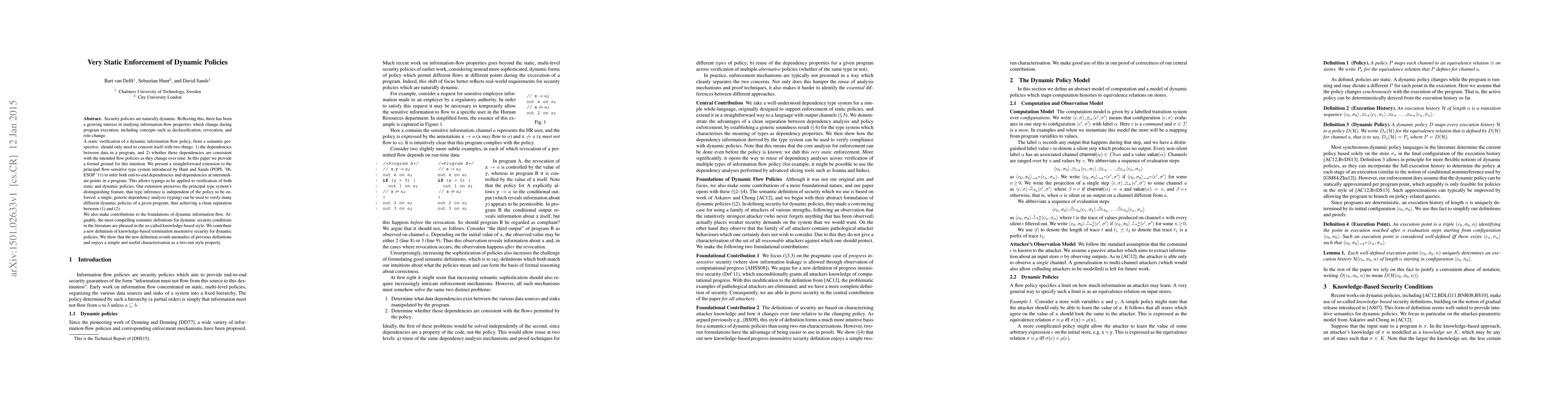 Security policies are naturally dynamic. Reflecting this, there has been a growing interest in studying information-flow properties which change during program execution, including concepts such as declassification, revocation, and role-change. A static verification of a dynamic information flow policy, from a semantic perspective, should only need to concern itself with two things: 1) the dependencies between data in a program, and 2) whether those dependencies are consistent with the intended flow policies as they change over time. In this paper we provide a formal ground for this intuition. We present a straightforward extension to the principal flow-sensitive type system introduced by Hunt and Sands (POPL '06, ESOP '11) to infer both end-to-end dependencies and dependencies at intermediate points in a program. This allows typings to be applied to verification of both static and dynamic policies. Our extension preserves the principal type system's distinguishing feature, that type inference is independent of the policy to be enforced: a single, generic dependency analysis (typing) can be used to verify many different dynamic policies of a given program, thus achieving a clean separation between (1) and (2). We also make contributions to the foundations of dynamic information flow. Arguably, the most compelling semantic definitions for dynamic security conditions in the literature are phrased in the so-called knowledge-based style. We contribute a new definition of knowledge-based termination insensitive security for dynamic policies. We show that the new definition avoids anomalies of previous definitions and enjoys a simple and useful characterisation as a two-run style property.
