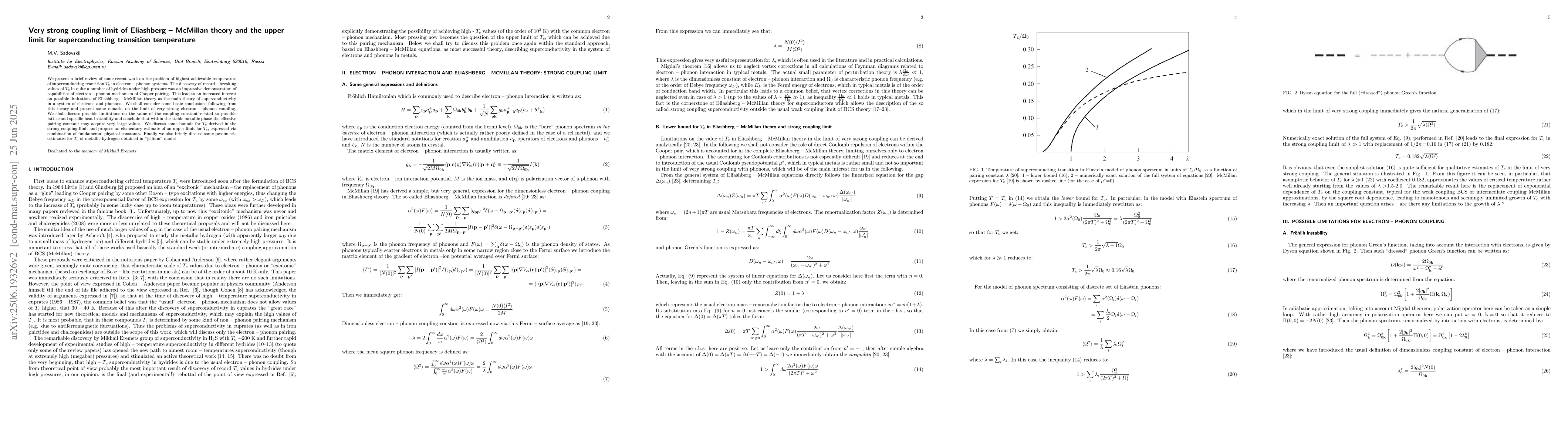 We present a brief review of some recent work on the problem of highest achievable temperature of superconducting transition $T_c$ in electron-phonon systems. The discovery of record-breaking values of $T_c$ in quite a number of hydrides under high pressure was an impressive demonstration of capabilities of electron-phonon mechanism of Cooper pairing. This lead to an increased interest on possible limitations of Eliashberg-McMillan theory as the main theory of superconductivity in a system of electrons and phonons. We shall consider some basic conclusions following from this theory and present some remarks on the limit of very strong electron-phonon coupling. We shall discuss possible limitations on the value of the coupling constant related to possible lattice and specific heat instability and conclude that within the stable metallic phase the effective pairing constant may acquire very large values. We discuss some bounds for $T_c$ derived in the strong coupling limit and propose an elementary estimate of an upper limit for $T_c$, expressed via combination of fundamental physical constants. Finally we also briefly discuss some pessimistic estimates for $T_c$ of metallic hydrogen obtained in ``jellium'' model.