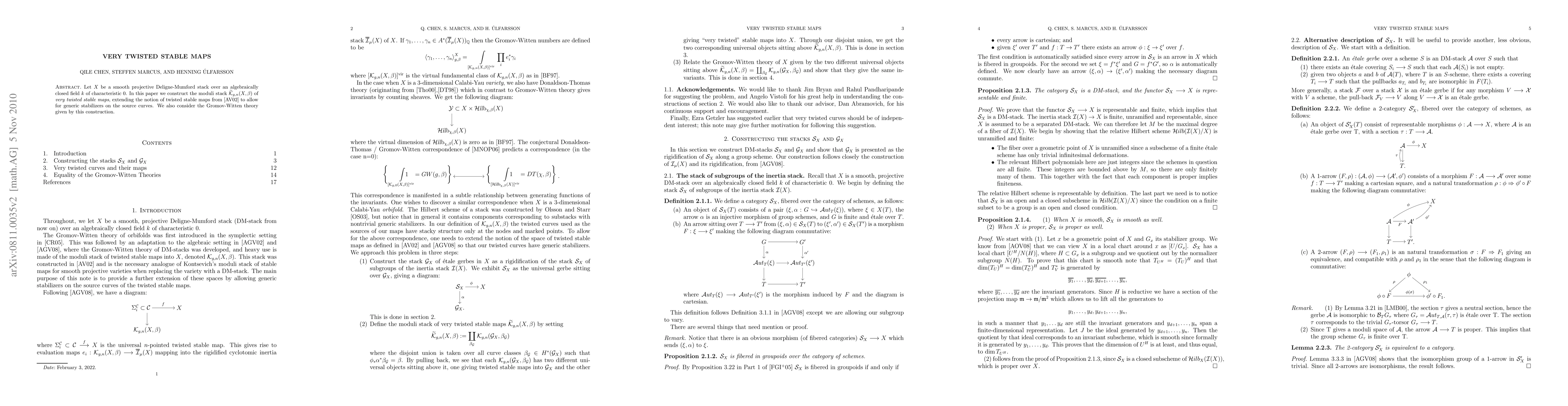 The paper constructs the moduli stack of very twisted stable maps, extending the notion of twisted stable maps to allow for generic stabilizers on the source curves, and considers the Gromov-Witten theory given by this construction.