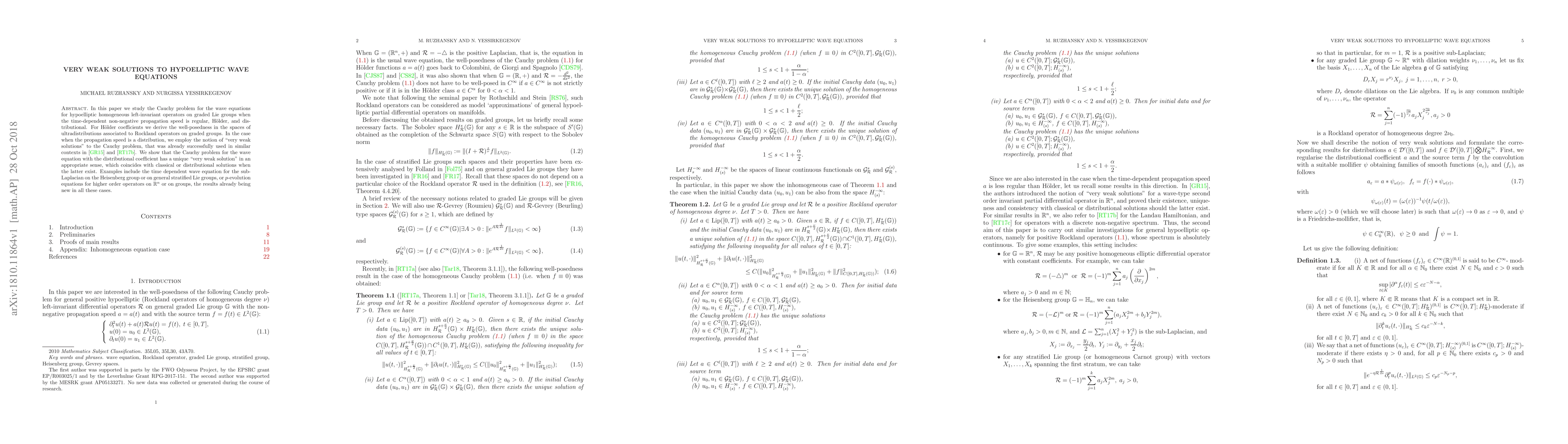 This paper investigates the Cauchy problem for hypoelliptic wave equations on graded Lie groups, proving well-posedness for H\"older coefficients in ultradistribution spaces. It introduces "very weak solutions" for distributional propagation speeds, showing their uniqueness and equivalence to classical or distributional solutions when applicable.