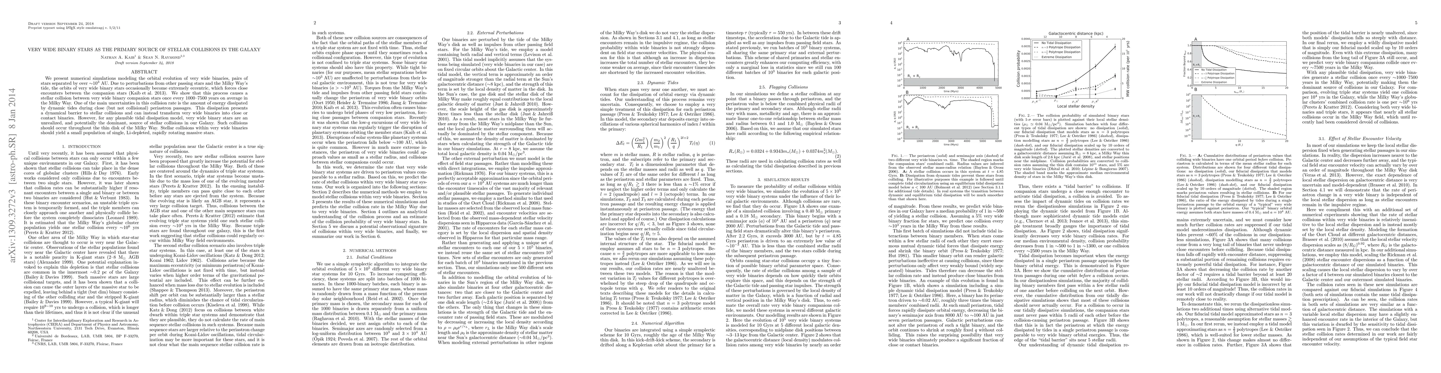 Numerical simulations show that very wide binary stars collide once every 1000-7500 years in the Milky Way, suggesting they may be a dominant source of stellar collisions. These collisions could produce single, rapidly rotating massive stars with depleted Li content.
