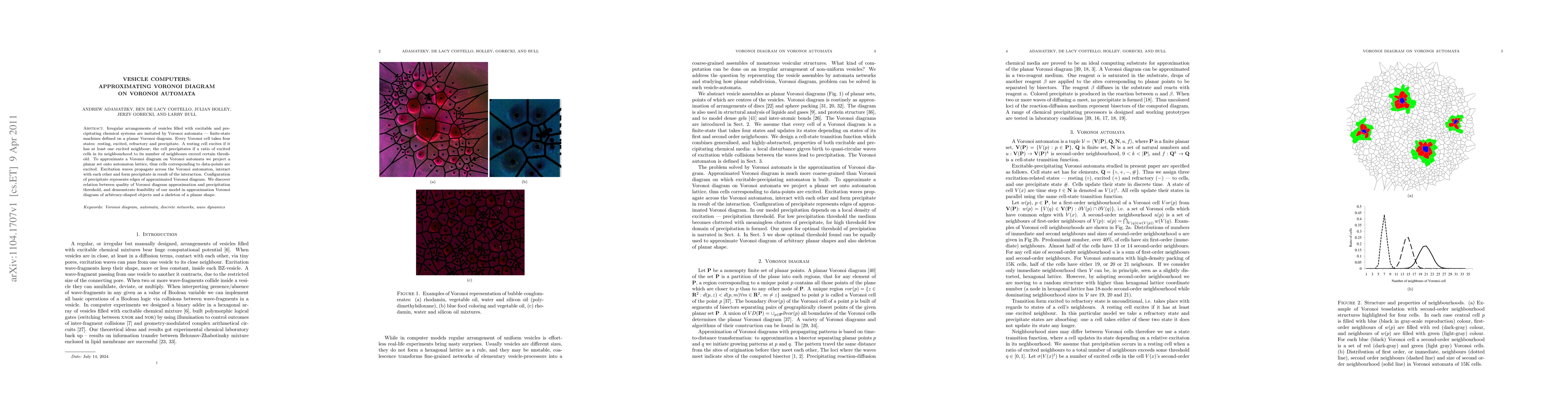 This paper explores the use of Voronoi automata to approximate Voronoi diagrams by simulating vesicle systems with excitable and precipitating chemical properties. The model demonstrates how excitation waves propagate and precipitate to form edges that represent the approximated Voronoi diagram, revealing a relationship between the precipitation threshold and approximation quality.