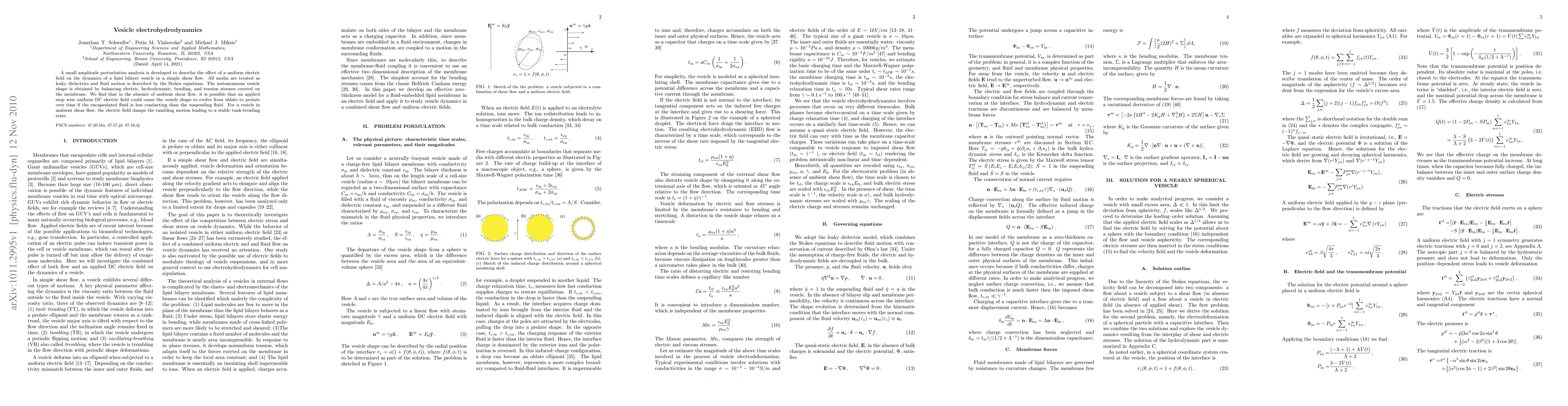 This paper develops a perturbation analysis to study how a uniform electric field affects the dynamics of lipid bilayer vesicles in a simple shear flow, treating all media as leaky dielectrics. It finds that an electric field can induce shape changes in the vesicle and stabilize its motion in shear flow.
