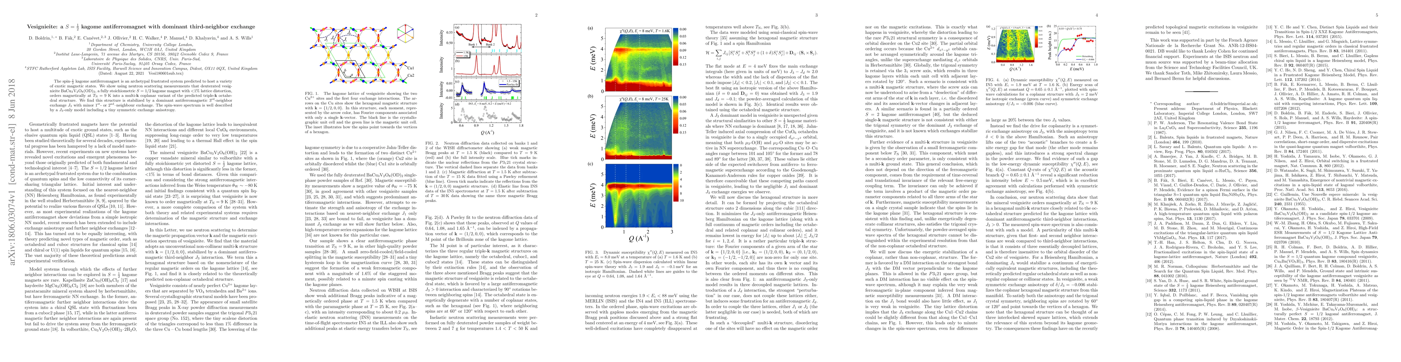 This paper reports neutron scattering measurements revealing that deuterated vesignieite, a spin-$\frac{1}{2}$ kagome antiferromagnet, orders magnetically at 9K into a multi-k coplanar structure stabilized by dominant third-neighbor exchange interactions. The spin-wave spectrum is well-explained by a $J_3$-only model with minor anisotropy.
