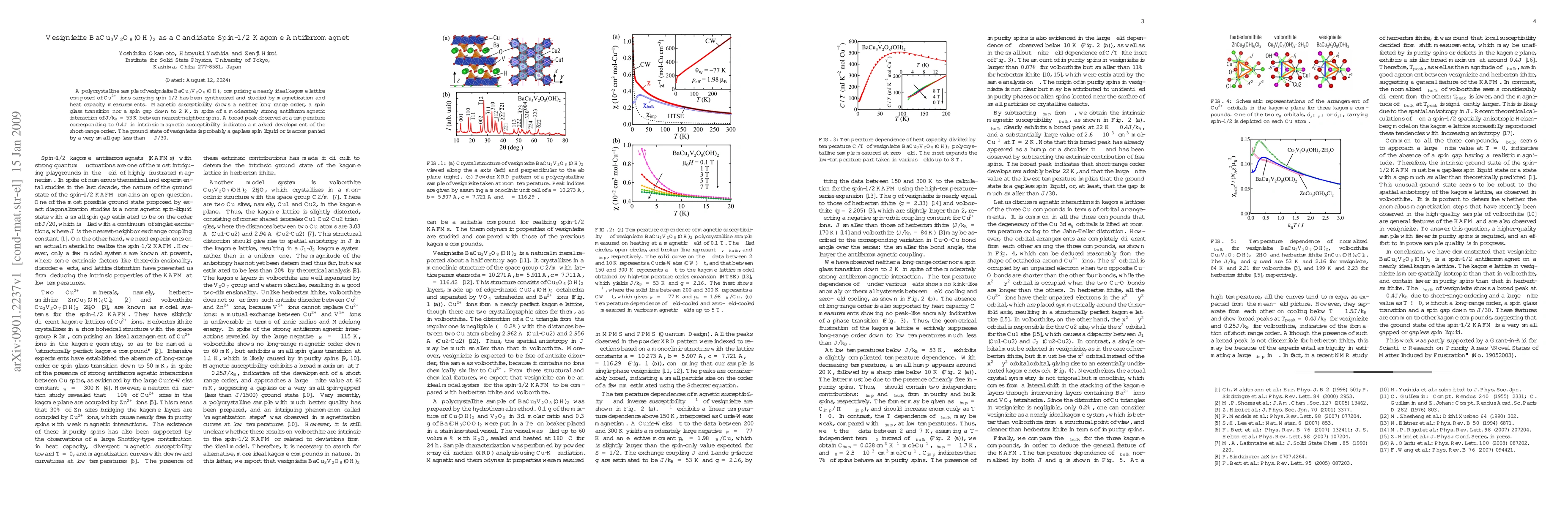 Vesignieite BaCu3V2O8(OH)2, featuring a nearly ideal kagome lattice of spin-1/2 Cu2+ ions, exhibits no long-range magnetic order down to 2 K despite strong antiferromagnetic interactions. The material likely resides in a gapless spin liquid state or possesses an extremely small gap.