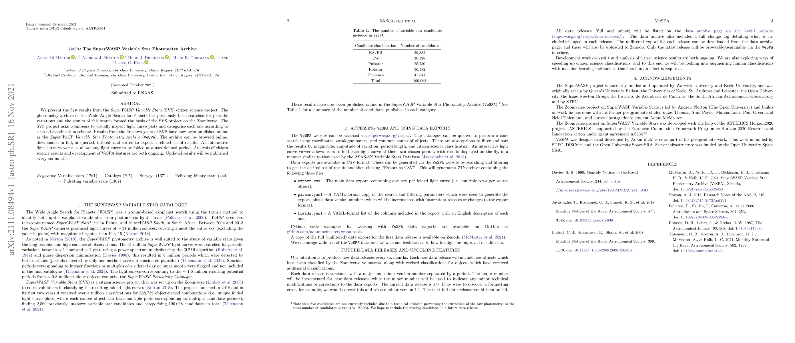 The SuperWASP Variable Stars project, utilizing citizen science, has published its first two years' results online as the VeSPA archive, allowing users to browse, download, and analyze variable star light curves. Ongoing analysis and feature development will continue to refine the archive.