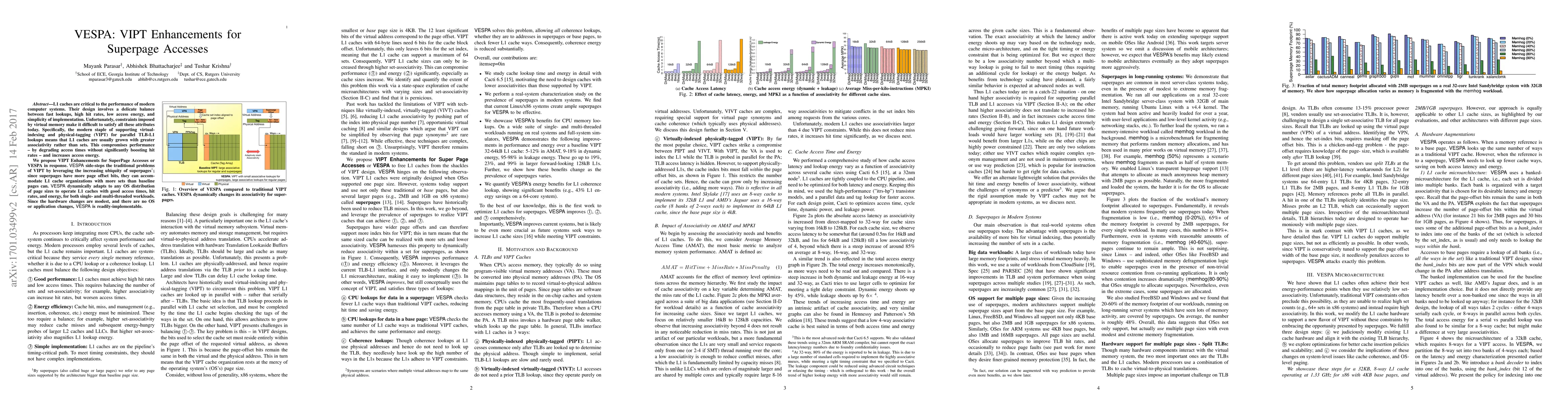 L1 caches are critical to the performance of modern computer systems. Their design involves a delicate balance between fast lookups, high hit rates, low access energy, and simplicity of implementation. Unfortunately, constraints imposed by virtual memory make it difficult to satisfy all these attributes today. Specifically, the modern staple of supporting virtual-indexing and physical-tagging (VIPT) for parallel TLB-L1 lookups means that L1 caches are usually grown with greater associativity rather than sets. This compromises performance -- by degrading access times without significantly boosting hit rates -- and increases access energy. We propose VIPT Enhancements for SuperPage Accesses or VESPA in response. VESPA side-steps the traditional problems of VIPT by leveraging the increasing ubiquity of superpages; since superpages have more page offset bits, they can accommodate L1 cache organizations with more sets than baseline pages can. VESPA dynamically adapts to any OS distribution of page sizes to operate L1 caches with good access times, hit rates, and energy, for both single- and multi-threaded workloads. Since the hardware changes are modest, and there are no OS or application changes, VESPA is readily-implementable. By superpages (also called huge or large pages) we refer to any page sizes supported by the architecture bigger than baseline page size.