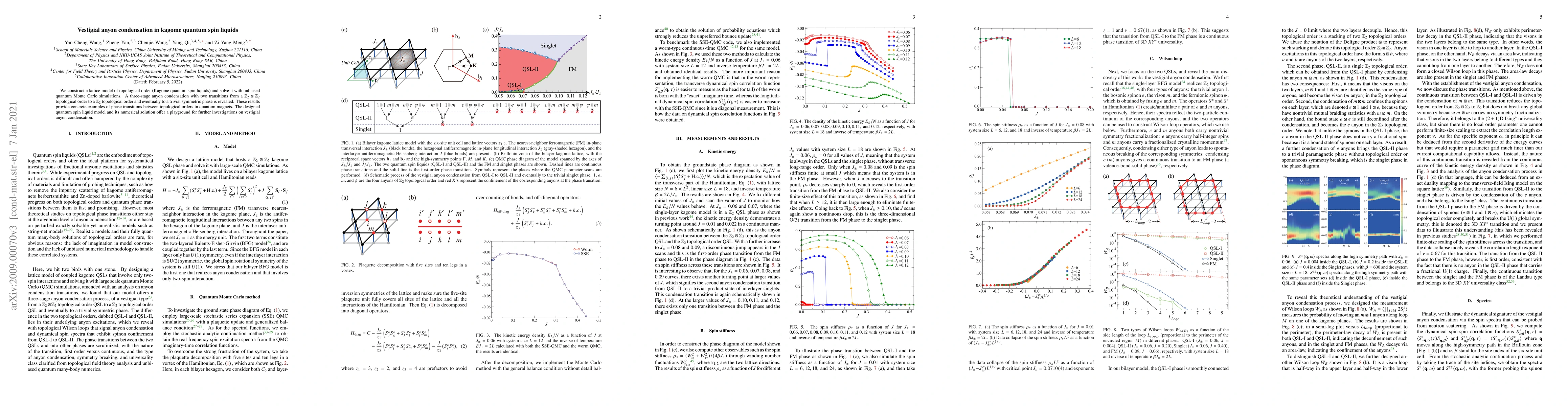 We construct a lattice model of topological order (kagome quantum spin liquids) and solve it with unbiased quantum Monte Carlo simulations. A three-stage anyon condensation with two transitions from a $\mathbb Z_2\boxtimes\mathbb Z_2$ topological order to a $\mathbb Z_2$ topological order and eventually to a trivial symmetric phase is revealed. These results provide concrete examples of phase transitions between topological orders in quantum magnets. The designed quantum spin liquid model and its numerical solution offer a playground for further investigations on vestigial anyon condensation.