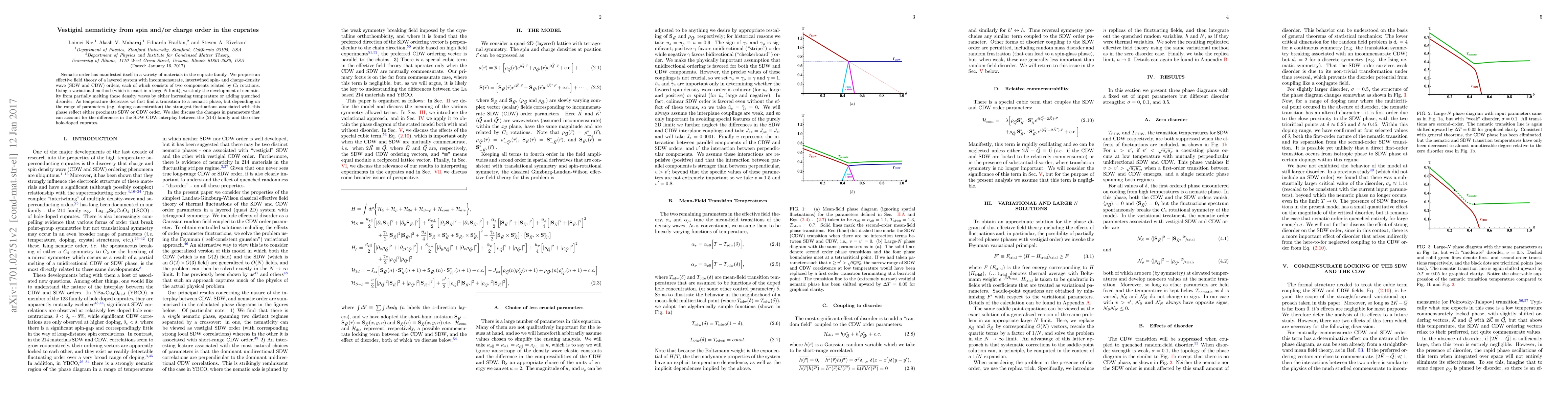 Nematic order has manifested itself in a variety of materials in the cuprate family. We propose an effective field theory of a layered system with incommensurate, intertwined spin- and charge-density wave (SDW and CDW) orders, each of which consists of two components related by $C_4$ rotations. Using a variational method (which is exact in a large $N$ limit), we study the development of nematicity from partially melting those density waves by either increasing temperature or adding quenched disorder. As temperature decreases we first find a transition to a nematic phase, but depending on the range of parameters (e.g. doping concentration) the strongest fluctuations associated with this phase reflect either proximate SDW or CDW order. We also discuss the changes in parameters that can account for the differences in the SDW-CDW interplay between the (214) family and the other hole-doped cuprates.