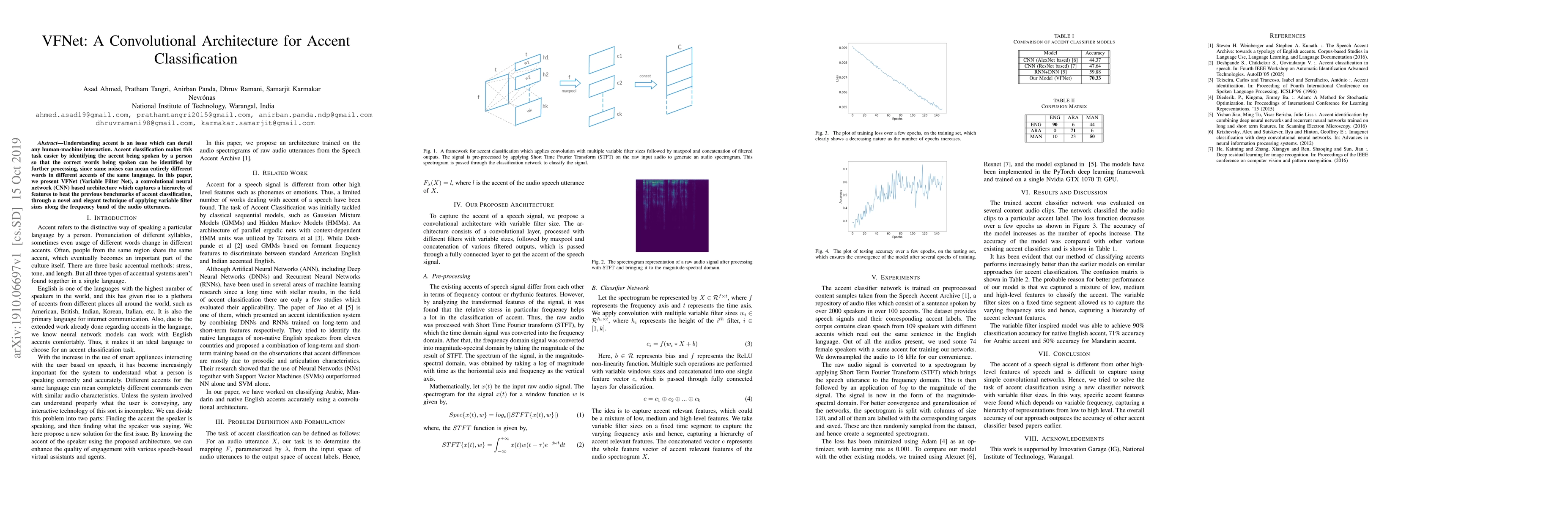 This paper introduces VFNet, a convolutional neural network that uses variable filter sizes to classify accents with improved accuracy. It presents a novel approach to accent classification, which can aid in more accurate word identification in human-machine interactions.