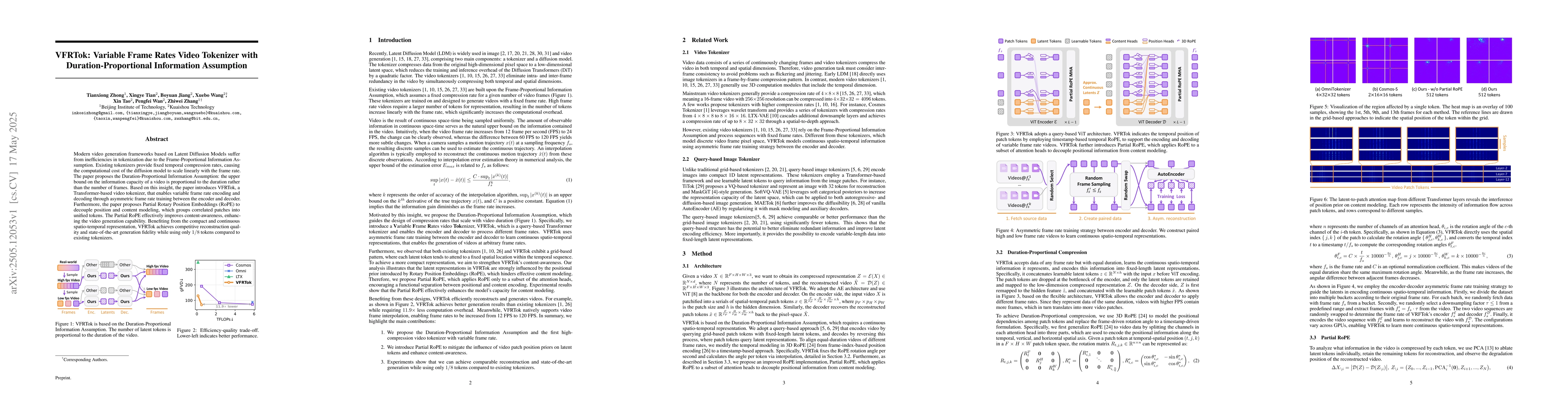 A new video tokenizer called VFRTok improves video generation capabilities by using duration-proportional information and partial rotary position embeddings, achieving competitive reconstruction quality and state-of-the-art generation fidelity while reducing token usage.