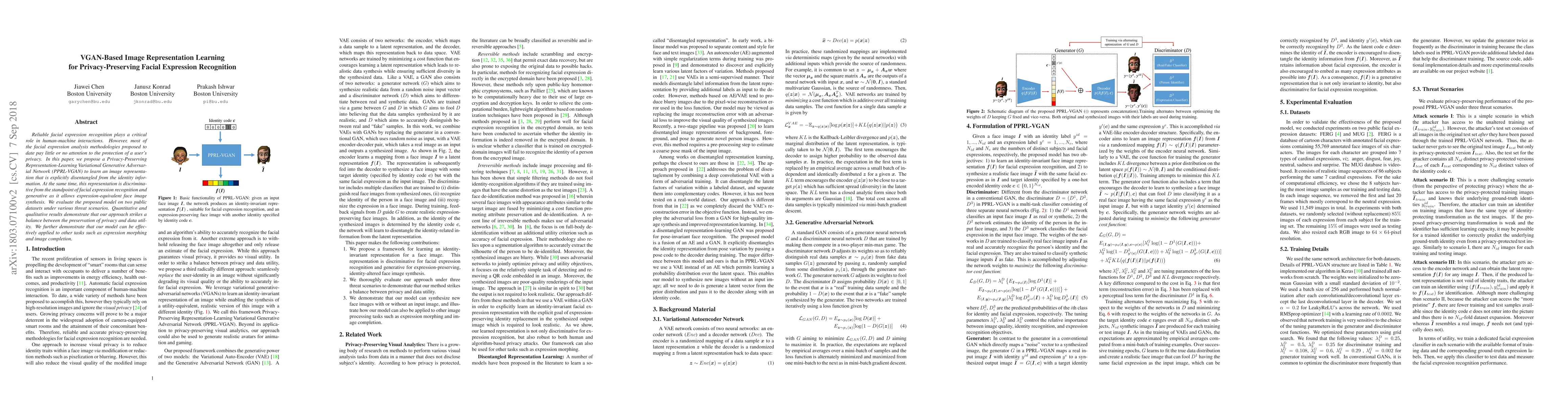 This paper proposes a Privacy-Preserving Representation-Learning Variational Generative Adversarial Network (PPRL-VGAN) to disentangle facial expression recognition from identity information, balancing privacy and data utility. The model enables expression-equivalent face image synthesis and shows effectiveness in tasks like expression morphing and image completion.