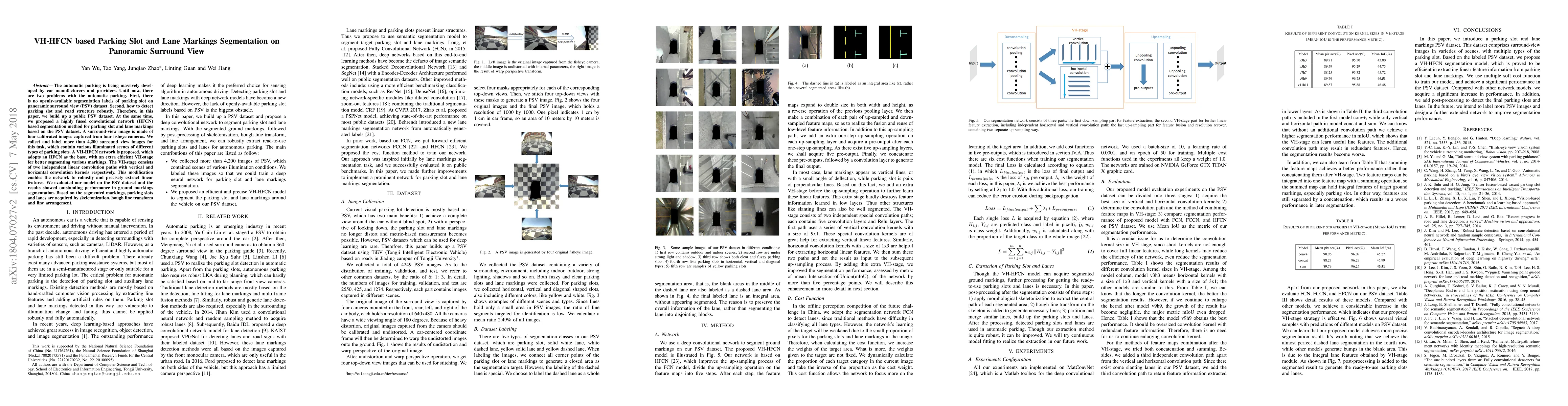 This paper introduces a public dataset for panoramic surround view (PSV) and proposes a VH-HFCN network for robust segmentation of parking slots and lane markings. The VH-HFCN network, enhanced by a VH-stage with vertical and horizontal convolutions, achieves superior performance in segmenting linear features, enabling accurate detection of parking slots and lanes.