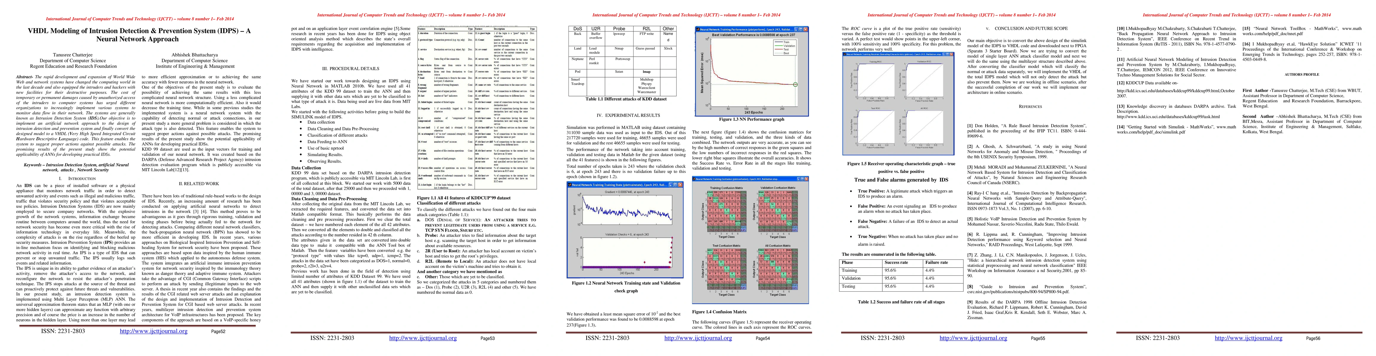 This paper presents a VHDL model for an Intrusion Detection and Prevention System (IDPS) using a neural network approach to detect and prevent unauthorized access to computer systems. The research demonstrates the potential of artificial neural networks in creating effective and practical intrusion detection systems.