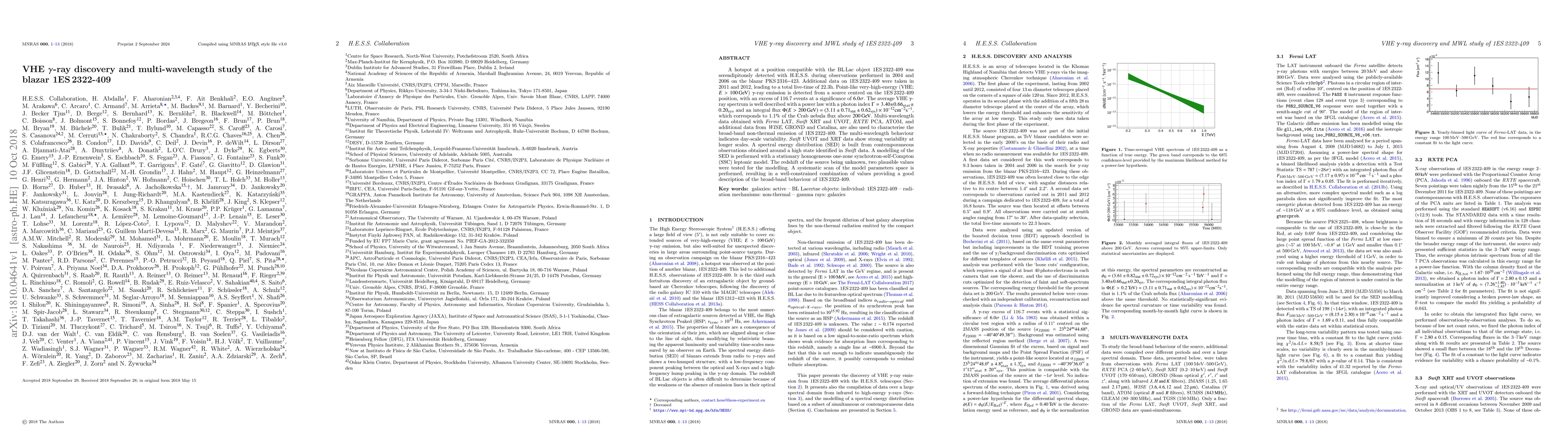 A hotspot at a position compatible with the BL Lac object 1ES 2322-409 was serendipitously detected with H.E.S.S. during observations performed in 2004 and 2006 on the blazar PKS 2316-423. Additional data on 1ES 2322-409 were taken in 2011 and 2012, leading to a total live-time of 22.3h. Point-like very-high-energy (VHE; E>100GeV) $\gamma$-ray emission is detected from a source centred on the 1ES 2322-409 position, with an excess of 116.7 events at a significance of 6.0$\sigma$. The average VHE $\gamma$-ray spectrum is well described with a power law with a photon index $\Gamma=3.40\pm0.66_{\text{stat}}\pm0.20_{\text{sys}}$ and an integral flux $\Phi(E>200GeV) = (3.11\pm0.71_{\rm stat}\pm0.62_{\rm sys})\times10^{-12} cm^{-2} s^{-1}$, which corresponds to 1.1$\%$ of the Crab nebula flux above 200 GeV. Multi-wavelength data obtained with Fermi LAT, Swift XRT and UVOT, RXTE PCA, ATOM, and additional data from WISE, GROND and Catalina, are also used to characterise the broad-band non-thermal emission of 1ES 2322-409. The multi-wavelength behaviour indicates day-scale variability. Swift UVOT and XRT data show strong variability at longer scales. A spectral energy distribution (SED) is built from contemporaneous observations obtained around a high state identified in Swift data. A modelling of the SED is performed with a stationary homogeneous one-zone synchrotron-self-Compton (SSC) leptonic model. The redshift of the source being unknown, two plausible values were tested for the modelling. A systematic scan of the model parameters space is performed, resulting in a well-constrained combination of values providing a good description of the broad-band behaviour of 1ES 2322-409.