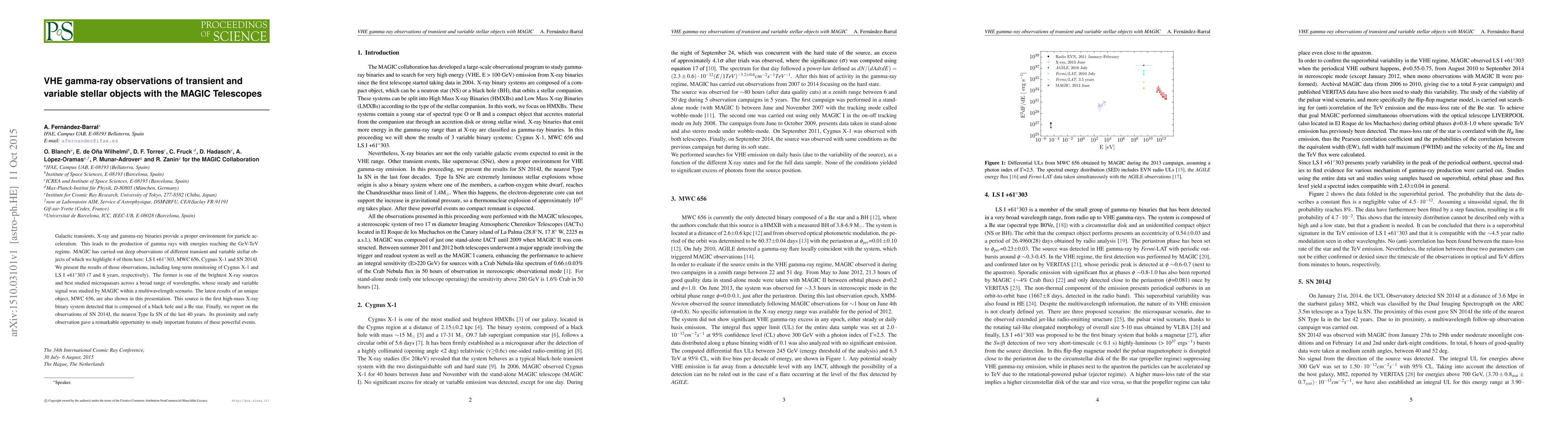 Galactic transients, X-ray and gamma-ray binaries provide a proper environment for particle acceleration. This leads to the production of gamma rays with energies reaching the GeV-TeV regime. MAGIC has carried out deep observations of different transient and variable stellar objects of which we highlight 4 of them here: LSI+61 303, MWC 656, Cygnus X-1 and SN 2014J. We present the results of those observations, including long-term monitoring of Cygnus X-1 and LSI+61 303 (7 and 8 years, respectively). The former is one of the brightest X-ray sources and best studied microquasars across a broad range of wavelengths, whose steady and variable signal was studied by MAGIC within a multiwavelength scenario. The latest results of an unique object, MWC 656, are also shown in this presentation. This source is the first high-mass X-ray binary system detected that is composed of a black hole and a Be star. Finally, we report on the observations of SN 2014J, the nearest Type Ia SN of the last 40 years. Its proximity and early observation gave a remarkable opportunity to study important features of these powerful events.