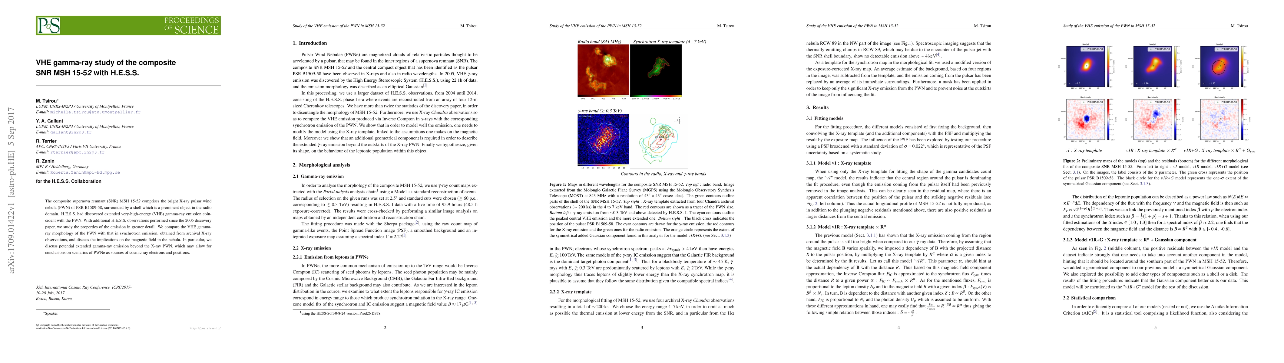 This study uses H.E.S.S. observations to analyze the extended VHE gamma-ray emission from the composite SNR MSH 15-52, focusing on the PWN of PSR B1509-58. The findings compare the VHE gamma-ray morphology with synchrotron emission, providing insights into the magnetic field and the potential role of PWNe as sources of cosmic rays.