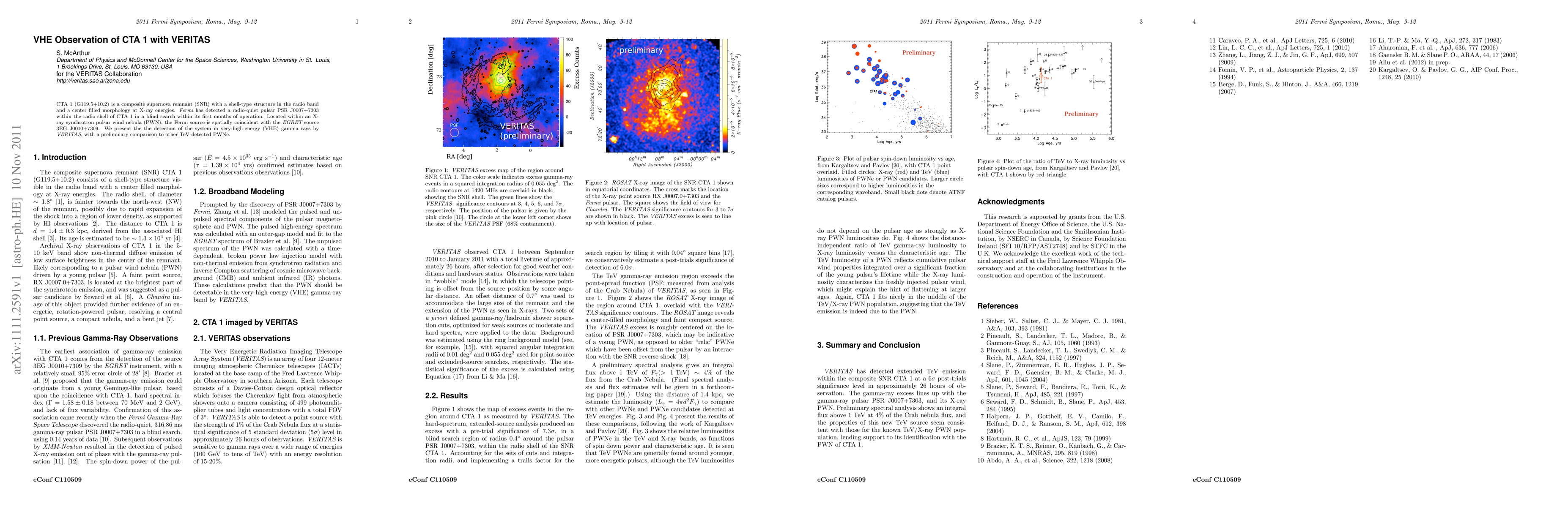 The VERITAS observatory detected very-high-energy (VHE) gamma rays from the composite supernova remnant CTA 1, which contains a radio-quiet pulsar and an X-ray synchrotron pulsar wind nebula. This detection provides a preliminary comparison to other TeV-detected pulsar wind nebulae.