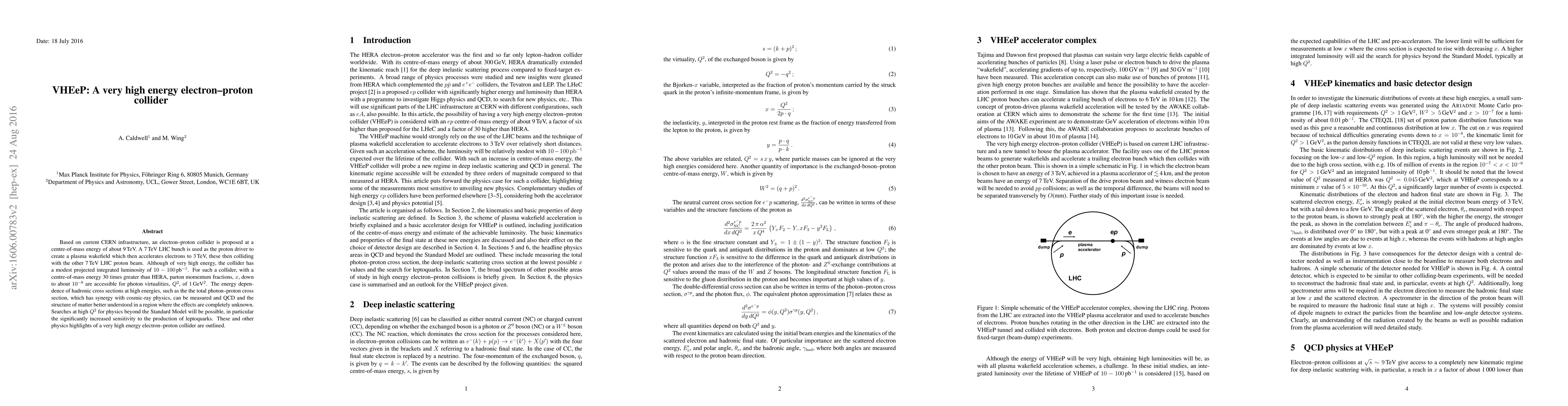 The paper proposes a very high energy electron-proton collider (VHEeP) utilizing CERN's existing infrastructure, aiming for a 9 TeV centre-of-mass energy, with potential to explore unknown regions of QCD and search for physics beyond the Standard Model, including leptoquarks. Despite high energy, the collider's projected luminosity is modest at $10-100$ pb$^{-1}$.
