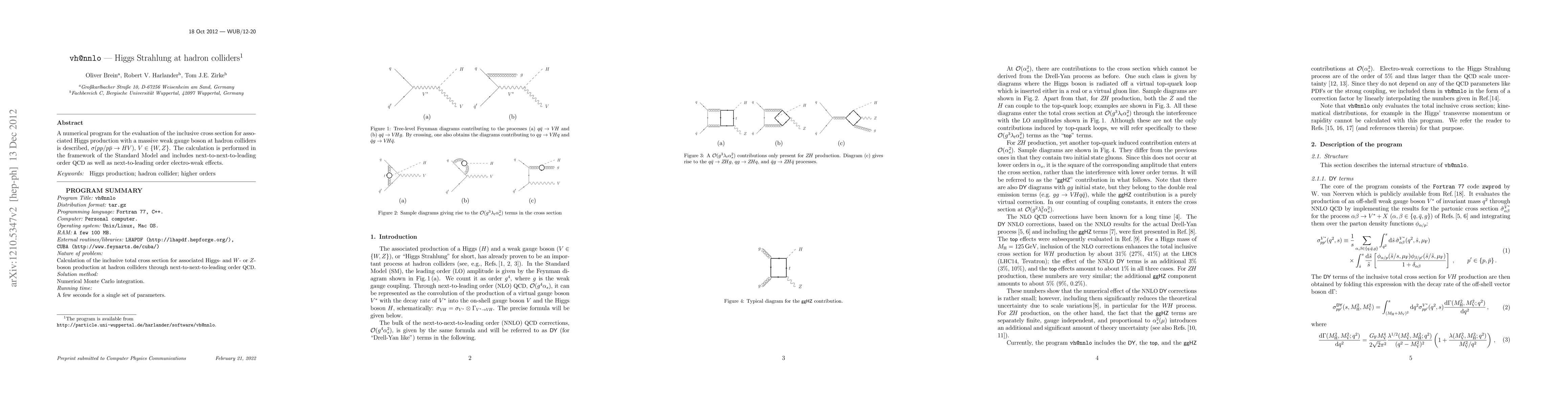 A numerical program for the evaluation of the inclusive cross section for associated Higgs production with a massive weak gauge boson at hadron colliders is described, sigma(pp/pbar p -> HV), V=W,Z. The calculation is performed in the framework of the Standard Model and includes next-to-next-to-leading order QCD as well as next-to-leading order electro-weak effects.
