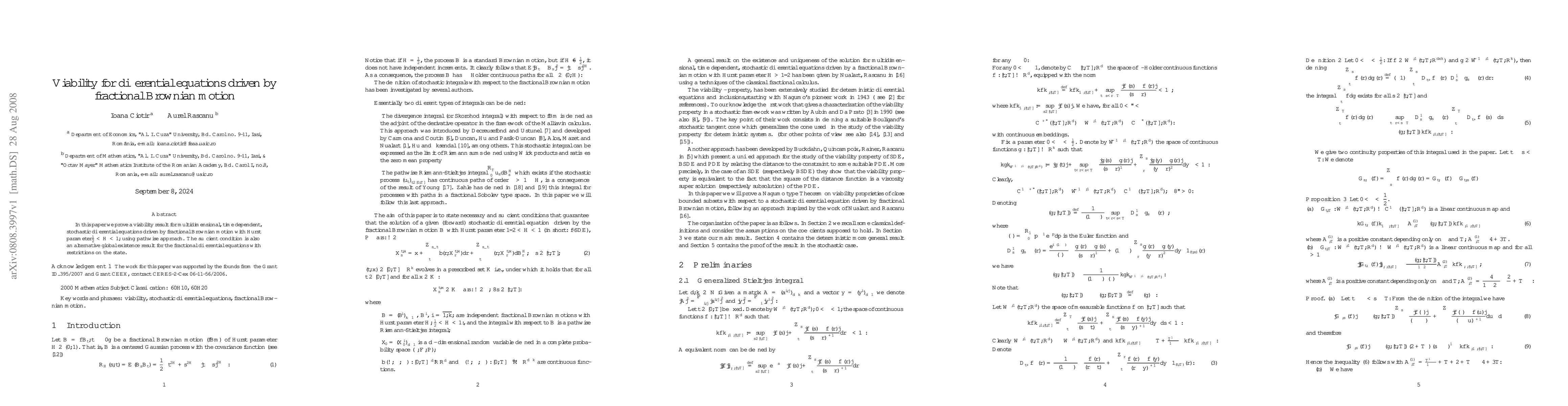 In this paper we prove a viability result for multidimensional, time dependent, stochastic differential equations driven by fractional Brownian motion with Hurst parameter1/2 < H < 1, using pathwise approach. The sufficient condition is also an alternative global existence result for the fractional differential equations with restrictions on the state.