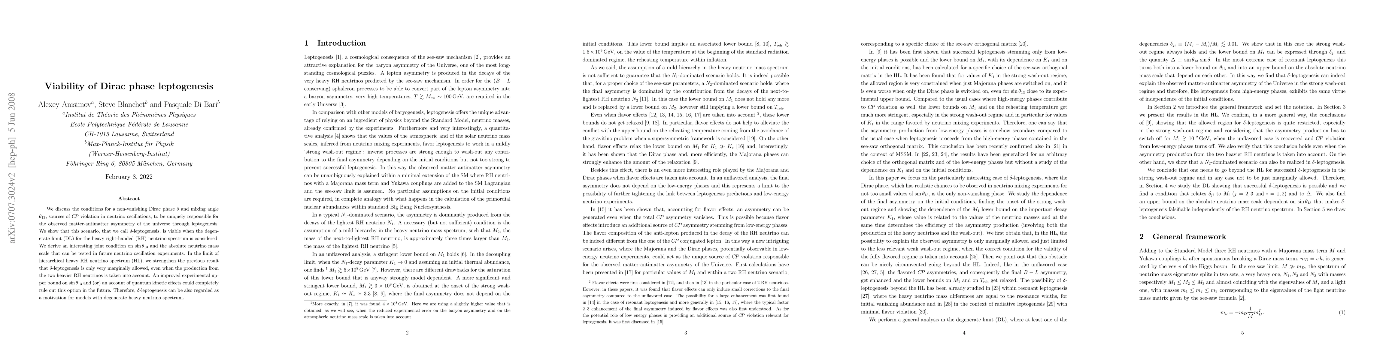 This paper explores the viability of Dirac phase leptogenesis, where the Dirac phase δ and mixing angle θ₁₃ are responsible for the universe's matter-antimatter asymmetry. It finds that this scenario is viable under a degenerate limit for heavy right-handed neutrinos, but only marginally allowed under a hierarchical spectrum, suggesting future experiments could rule it out.
