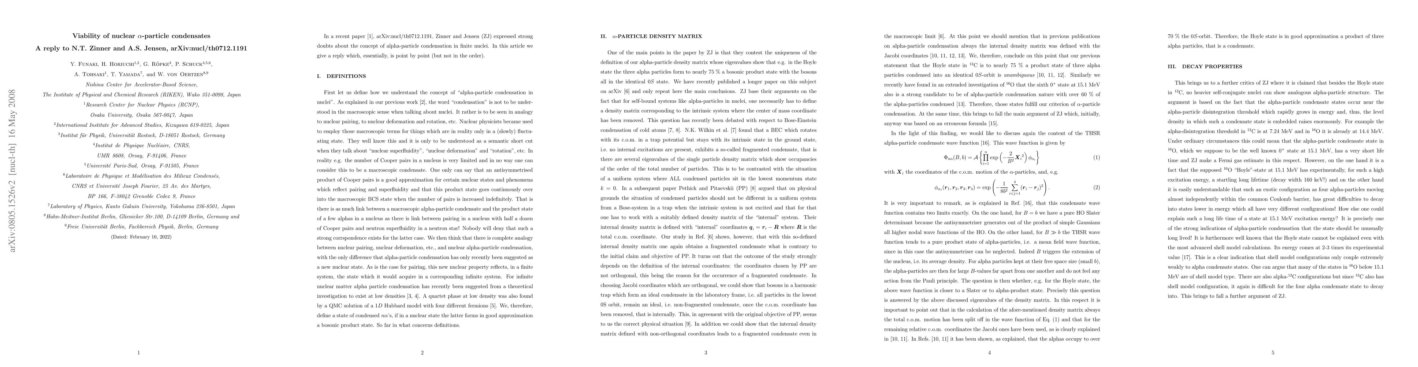 In a recent paper, arXiv0712.1191 [nucl-th], Zinner and Jensen (ZJ) expressed strong doubts about the concept of alpha-particle condensation in finite nuclei. In this article we give a reply which, essentially, is point by point (but not in the order).