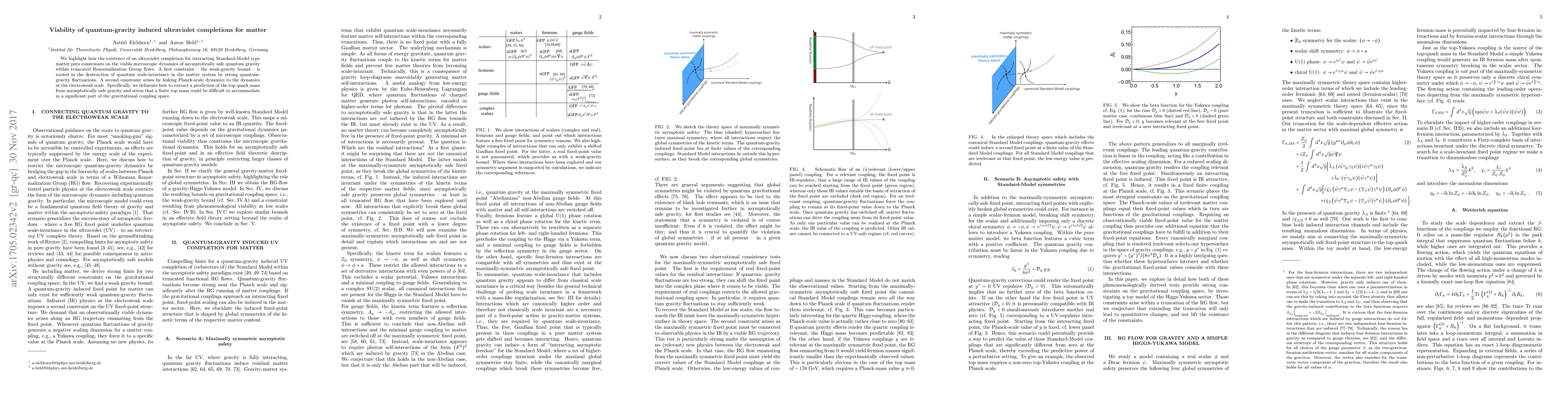 We highlight how the existence of an ultraviolet completion for interacting Standard-Model type matter puts constraints on the viable microscopic dynamics of asymptotically safe quantum gravity within truncated Renormalization Group flows. A first constraint -- the weak-gravity bound -- is rooted in the destruction of quantum scale-invariance in the matter system by strong quantum-gravity fluctuations. A second constraint arises by linking Planck-scale dynamics to the dynamics at the electroweak scale. Specifically, we delineate how to extract a prediction of the top quark mass from asymptotically safe gravity and stress that a finite top mass could be difficult to accommodate in a significant part of the gravitational coupling space.