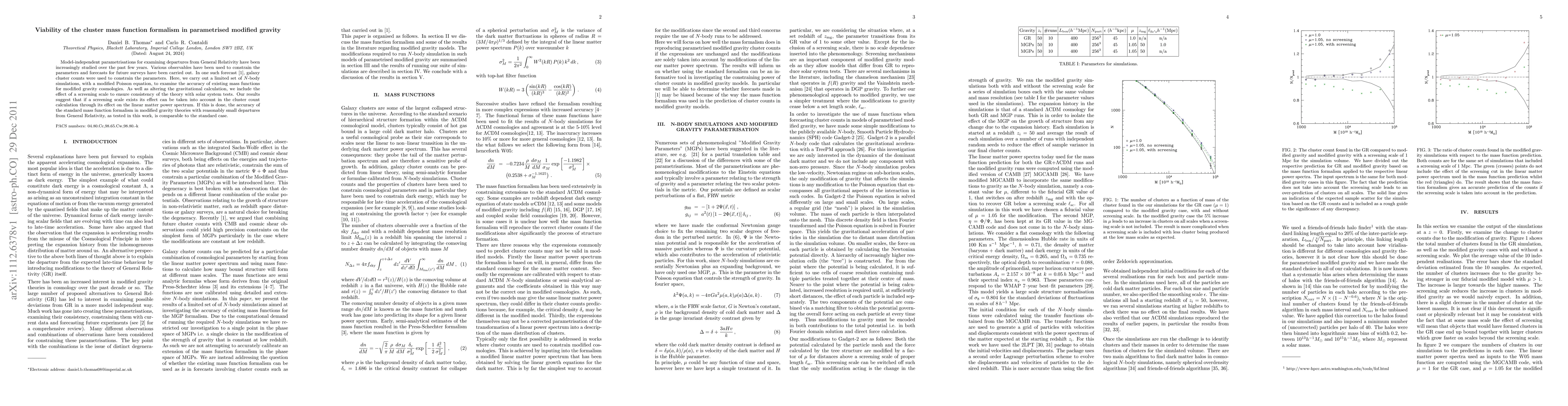 Model-independent parametrisations for examining departures from General Relativity have been increasingly studied over the past few years. Various observables have been used to constrain the parameters and forecasts for future surveys have been carried out. In one such forecast, galaxy cluster counts were used to constrain the parameters. Here, we carry out a limited set of $N$-body simulations, with a modified Poisson equation, to examine the accuracy of existing mass functions for modified gravity cosmologies. As well as altering the gravitational calculation, we include the effect of a screening scale to ensure consistency of the theory with solar system tests. Our results suggest that if a screening scale exists its effect can be taken into account in the cluster count calculation through its effect on the linear matter power spectrum. If this is done, the accuracy of the standard mass function formalism in modified gravity theories with reasonably small departures from General Relativity, as tested in this work, is comparable to the standard case.
