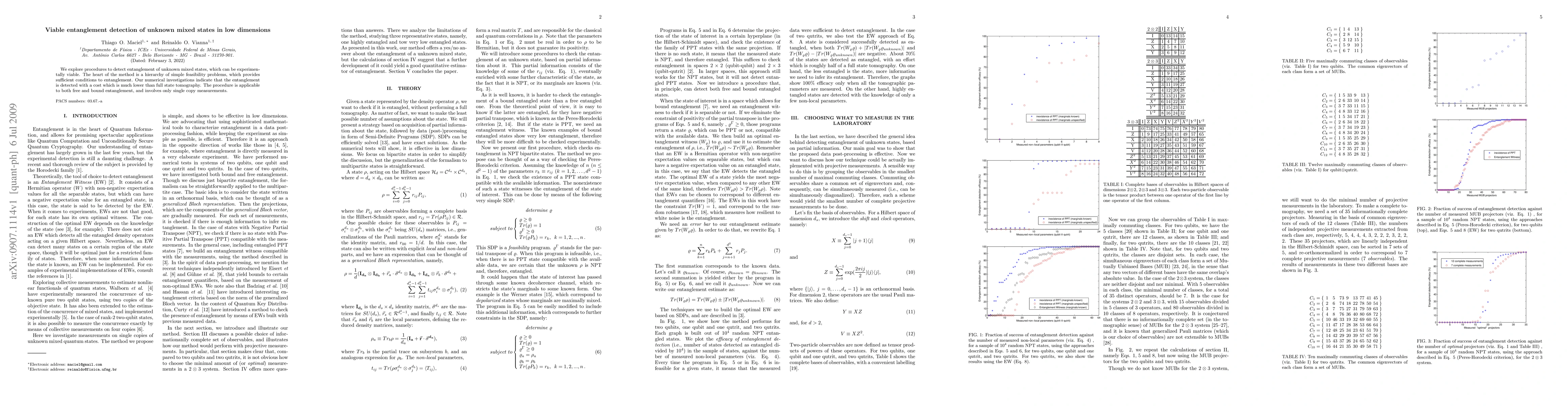 We explore procedures to detect entanglement of unknown mixed states, which can be experimentally viable. The heart of the method is a hierarchy of simple feasibility problems, which provides sufficient conditions to entanglement. Our numerical investigations indicate that the entanglement is detected with a cost which is much lower than full state tomography. The procedure is applicable to both free and bound entanglement, and involves only single copy measurements.
