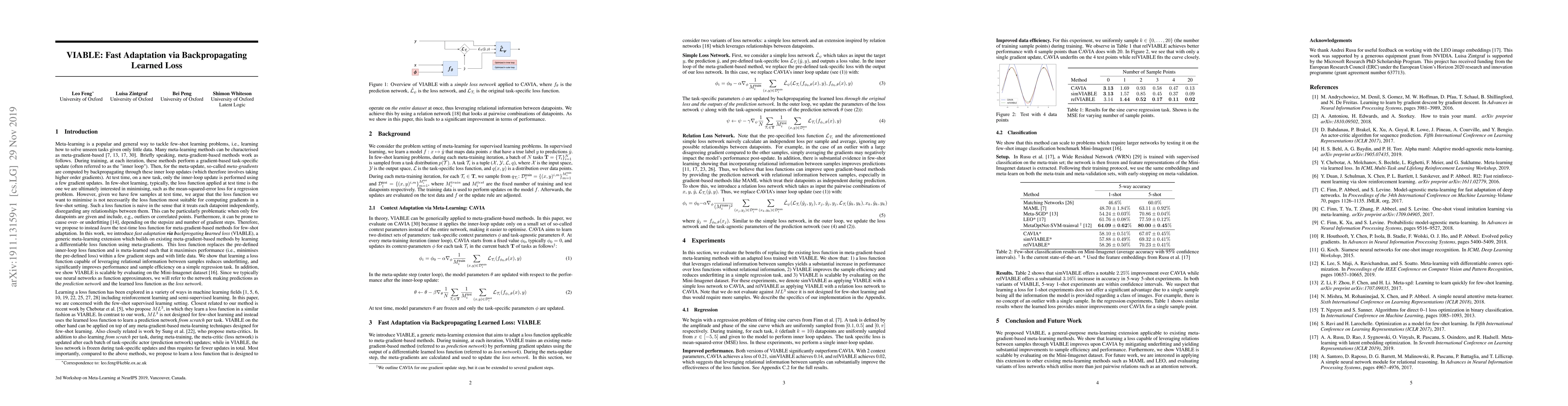 Researchers propose a new meta-learning method called VIABLE that enables fast adaptation in few-shot learning tasks, showing improved performance and sample efficiency on regression tasks. By learning a differentiable loss function, VIABLE reduces underfitting and scales to larger datasets.