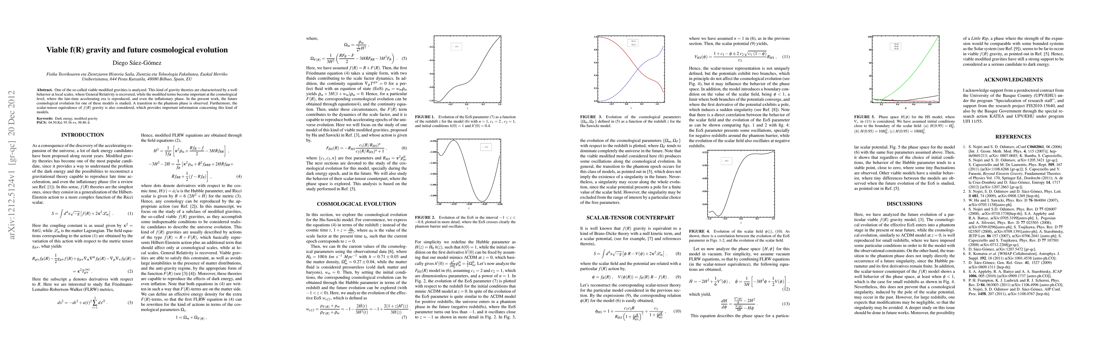 One of the so-called viable modified gravities is analyzed. This kind of gravity theories are characterized by a well behavior at local scales, where General Relativity is recovered, while the modified terms become important at the cosmological level, where the late-time accelerating era is reproduced, and even the inflationary phase. In the present work, the future cosmological evolution for one of these models is studied. A transition to the phantom phase is observed. Furthermore, the scalar-tensor equivalence of f(R) gravity is also considered, which provides important information concerning this kind of models.