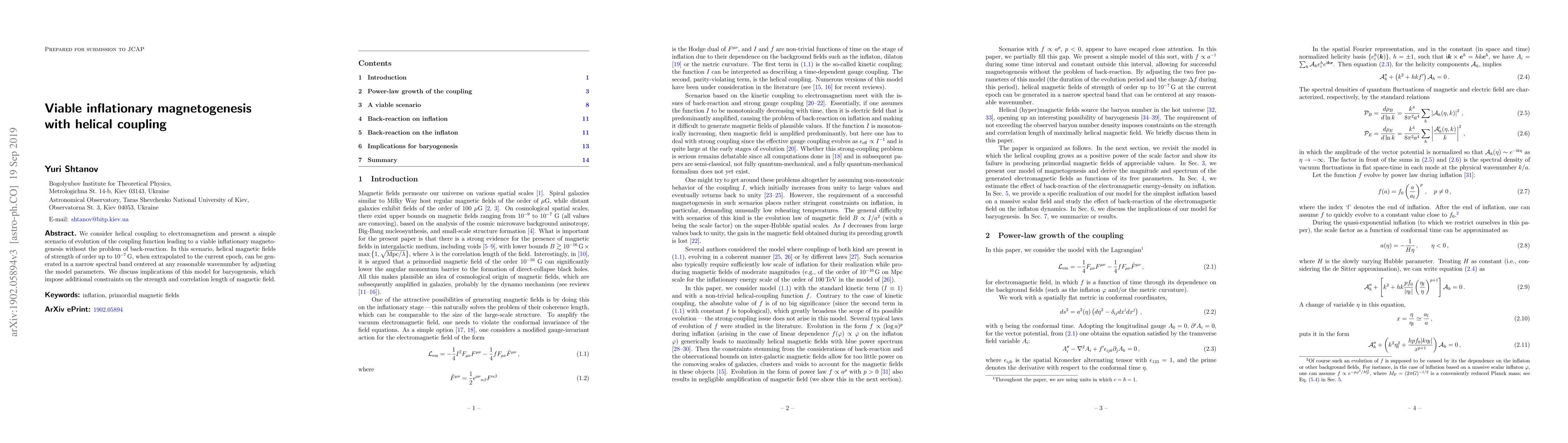 This paper proposes a helical coupling mechanism for generating inflationary magnetogenesis without back-reaction issues, predicting magnetic fields of up to $10^{-7}\,\text{G}$ today, and discusses its implications for baryogenesis, imposing constraints on magnetic field strength and correlation length.