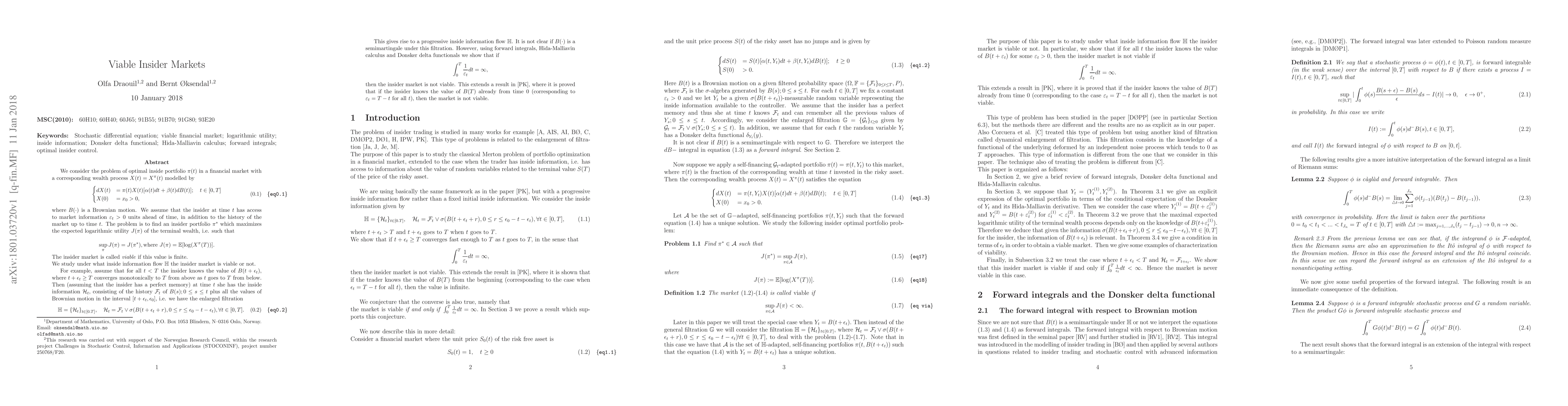 \mathbb{E}[\log(X^{\pi}(T))].$$ The insider market is called \emph{viable} if