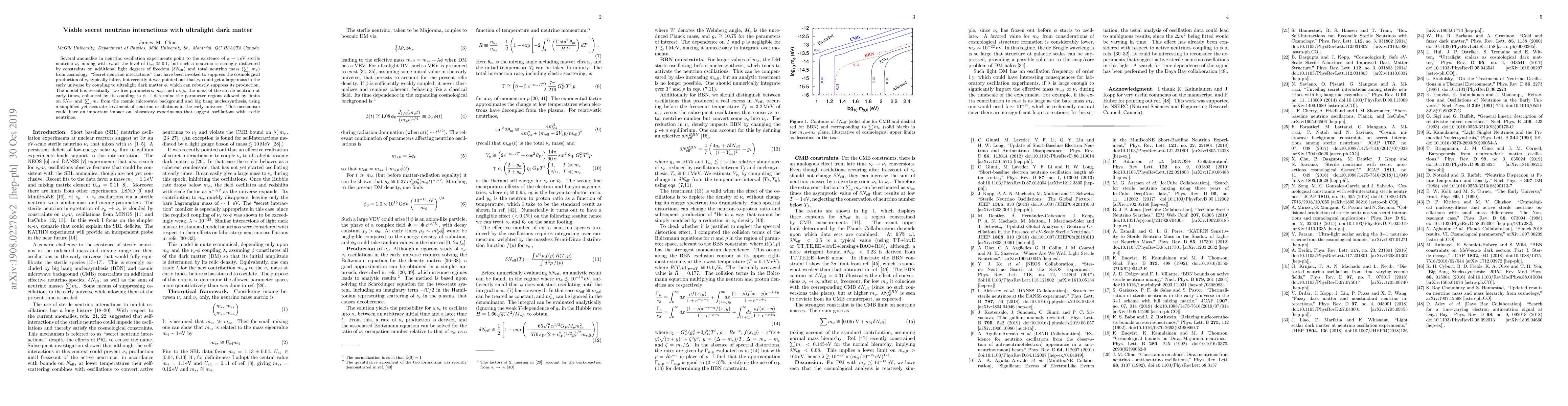 This paper explores the possibility of viable secret neutrino interactions with ultralight dark matter to explain anomalies in neutrino oscillation experiments, suggesting that a sterile neutrino could acquire a large mass through coupling to ultralight dark matter, thereby suppressing its cosmological production and potentially impacting future laboratory experiments. The model is constrained by limits on effective neutrino numbers and total neutrino mass from cosmic microwave background and big bang nucleosynthesis data.