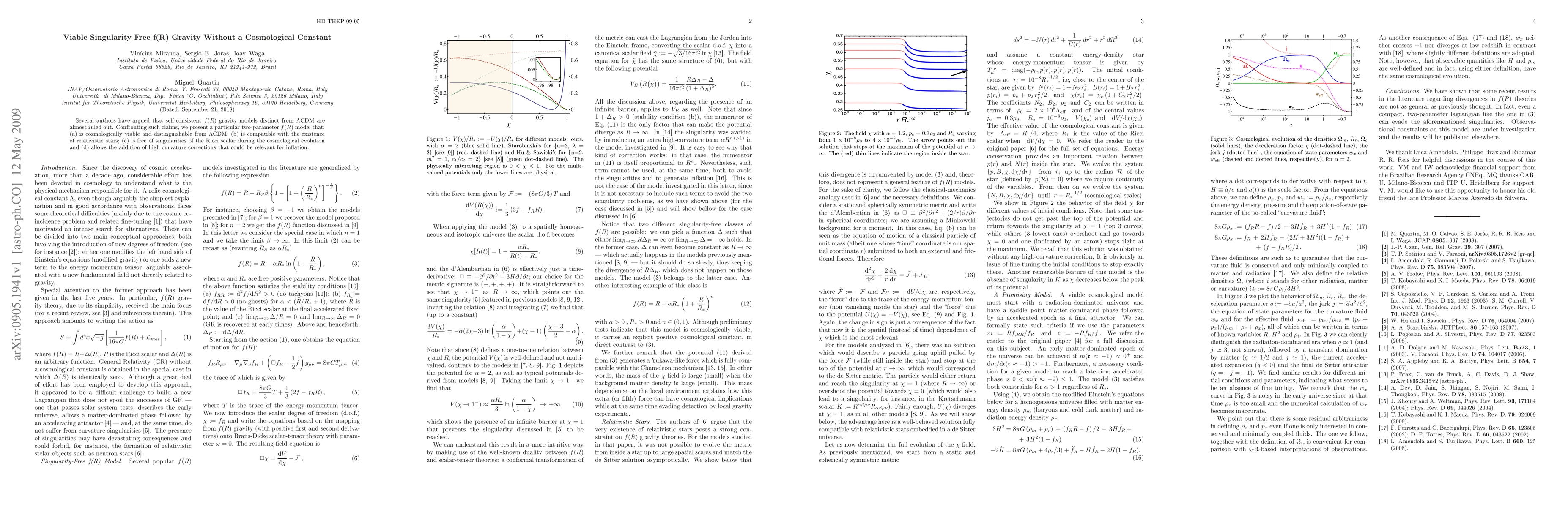 Researchers present a two-parameter $f(R)$ gravity model that is cosmologically viable and compatible with relativistic stars, without singularities or the need for a cosmological constant.