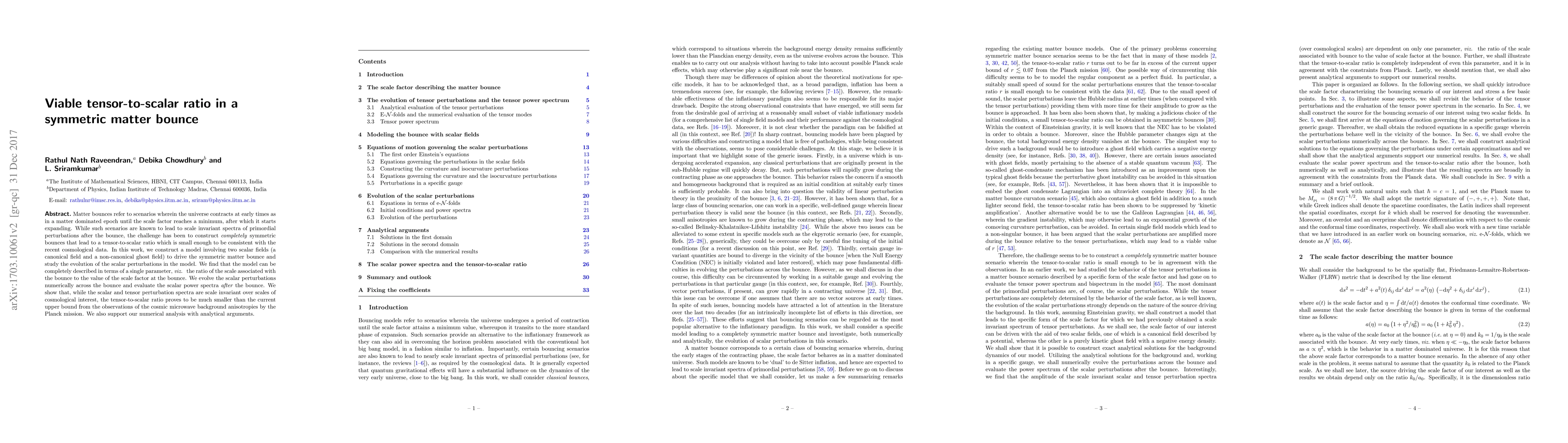 The research employs a two-field model involving a canonical scalar field and a non-canonical ghost field to drive a symmetric matter bounce. Analytical solutions for background quantities are obtained for a specific scale factor describing the bounce, simplifying the model to one parameter.