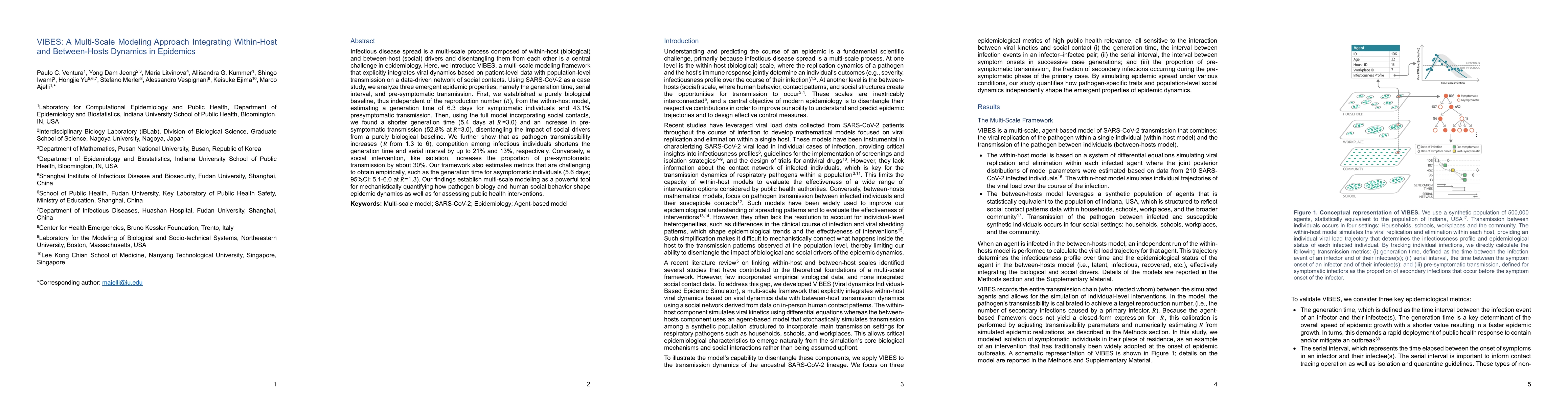 Infectious disease spread is a multi-scale process composed of within-host (biological) and between-host (social) drivers and disentangling them from each other is a central challenge in epidemiology. Here, we introduce VIBES, a multi-scale modeling framework that explicitly integrates viral dynamics based on patient-level data with population-level transmission on a data-driven network of social contacts. Using SARS-CoV-2 as a case study, we analyze three emergent epidemic properties, namely the generation time, serial interval, and pre-symptomatic transmission. First, we established a purely biological baseline, thus independent of the reproduction number (R), from the within-host model, estimating a generation time of 6.3 days for symptomatic individuals and 43.1% presymptomatic transmission. Then, using the full model incorporating social contacts, we found a shorter generation time (5.4 days at R=3.0) and an increase in pre-symptomatic transmission (52.8% at R=3.0), disentangling the impact of social drivers from a purely biological baseline. We further show that as pathogen transmissibility increases (R from 1.3 to 6), competition among infectious individuals shortens the generation time and serial interval by up to 21% and 13%, respectively. Conversely, a social intervention, like isolation, increases the proportion of pre-symptomatic transmission by about 30%. Our framework also estimates metrics that are challenging to obtain empirically, such as the generation time for asymptomatic individuals (5.6 days; 95%CI: 5.1-6.0 at R=1.3). Our findings establish multi-scale modeling as a powerful tool for mechanistically quantifying how pathogen biology and human social behavior shape epidemic dynamics as well as for assessing public health interventions.