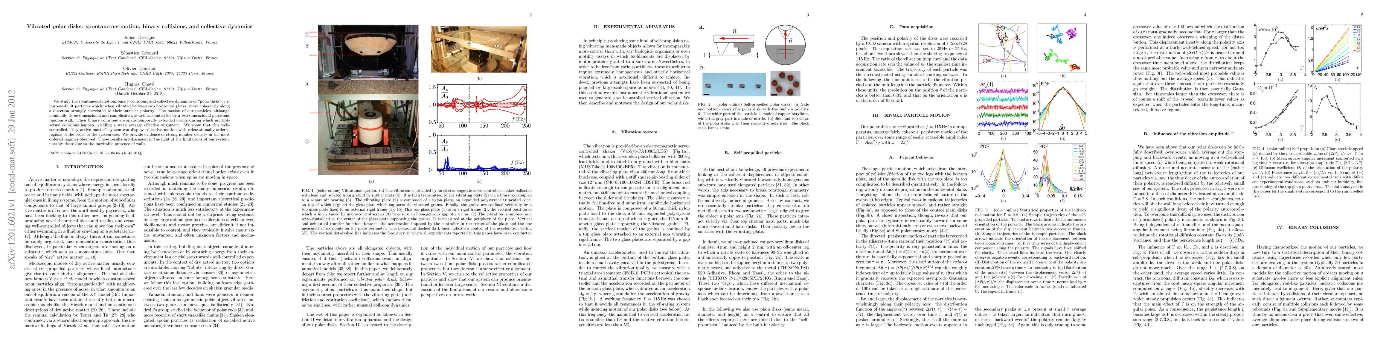 Researchers study vibrating polar disks that exhibit collective motion with orientationally-ordered regions, despite being confined to a two-dimensional space.
