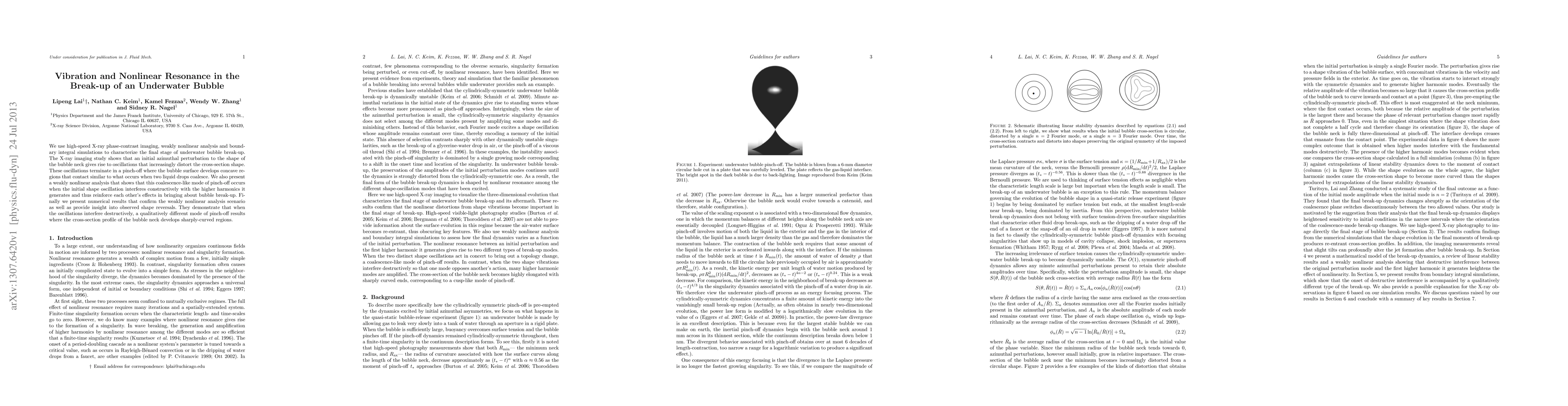 Researchers study how underwater bubbles break up using X-ray imaging, weakly nonlinear analysis, and simulations, revealing that initial shape oscillations can lead to pinch-off where the bubble surface coalesces with itself or sharply curves in a destructive interference scenario.