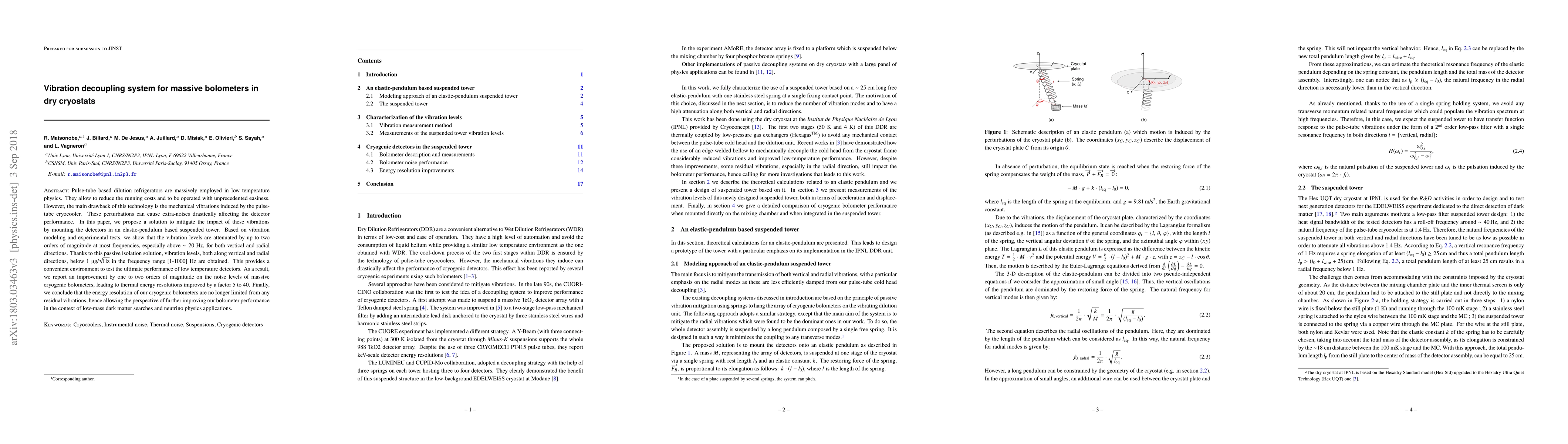 Pulse-tube based dilution refrigerators are massively employed in low temperature physics. They allow to reduce the running costs and to be operated with unprecedented easiness. However, the main drawback of this technology is the mechanical vibrations induced by the pulse-tube cryocooler. These perturbations can cause extra-noises drastically affecting the detector performance. In this paper, we propose a solution to mitigate the impact of these vibrations by mounting the detectors in an elastic-pendulum based suspended tower. Based on vibration modeling and experimental tests, we show that the vibration levels are attenuated by up to two orders of magnitude at most frequencies, especially above $\sim20$ Hz, for both vertical and radial directions. Thanks to this passive isolation solution, vibration levels, both along vertical and radial directions, below 1 $\mu\textrm{g/}\sqrt{\text{Hz}}$ in the frequency range [1-1000] Hz are obtained. This provides a convenient environment to test the ultimate performance of low temperature detectors. As a result, we report an improvement by one to two orders of magnitude on the noise levels of massive cryogenic bolometers, leading to thermal energy resolutions improved by a factor 5 to 40. Finally, we conclude that the energy resolution of our cryogenic bolometers are no longer limited from any residual vibrations, hence allowing the perspective of further improving our bolometer performance in the context of low-mass dark matter searches and neutrino physics applications.