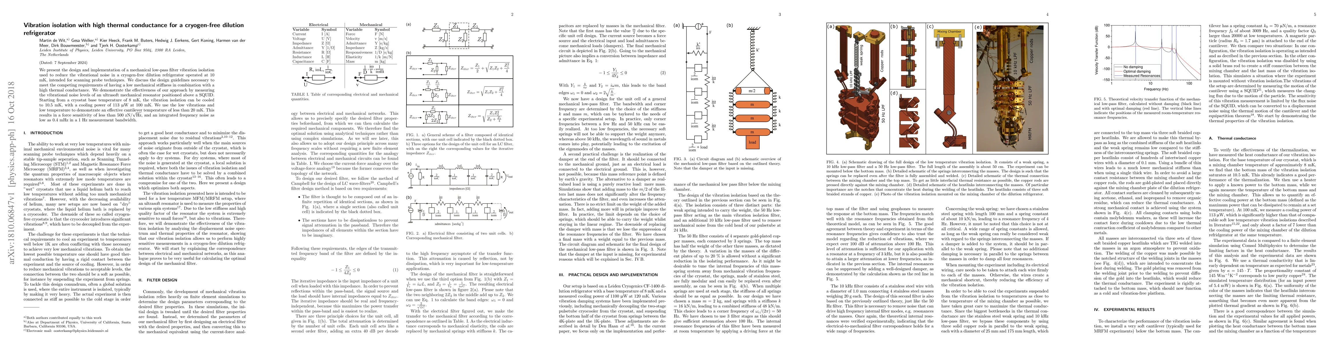 This paper details the design of a vibration isolation system for a cryogen-free dilution refrigerator, balancing low mechanical stiffness with high thermal conductance. The system achieves a force sensitivity of <500 zN/$\sqrt{\mathrm{Hz}}$ and a frequency noise of 0.4 mHz in a 1 Hz bandwidth, demonstrating effective isolation at temperatures below 10 mK.