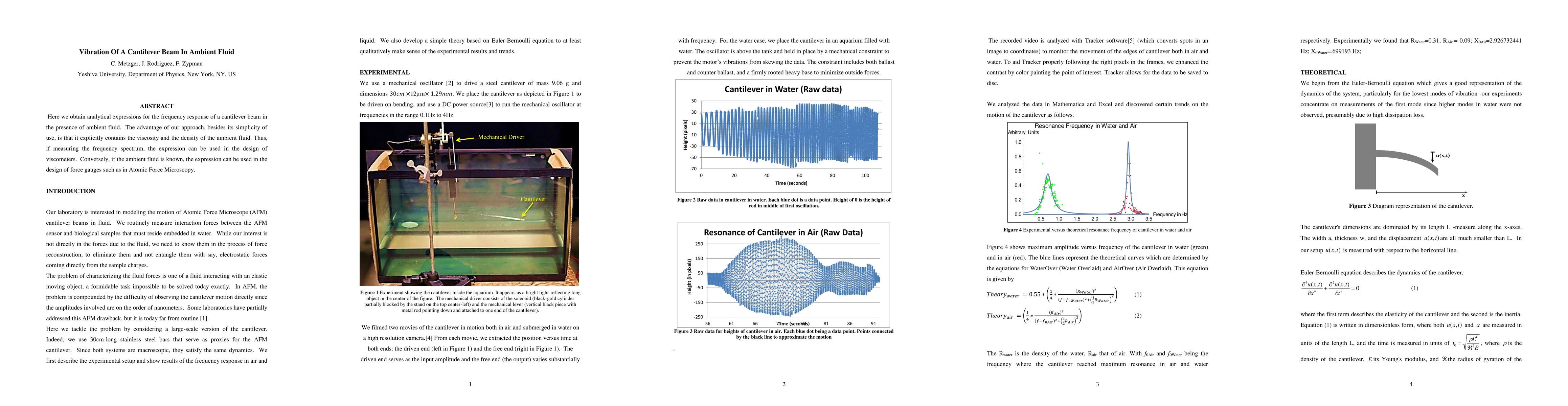 This paper presents an analytical method for determining the frequency response of a cantilever beam in an ambient fluid, explicitly incorporating fluid viscosity and density. The derived expressions are useful for designing viscometers or force gauges, such as in Atomic Force Microscopy.